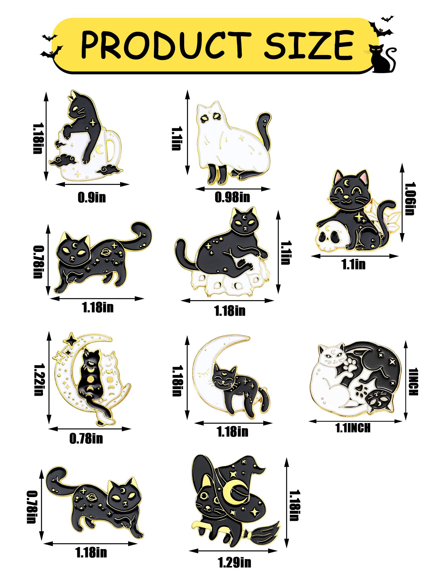- Original Brooches & Pins – 10 Pieces Cat Pins Cute Brooch Pin Set Kawaii Cat Backpack Pin Black Cat Book Brooch Gothic Aesthetic Cat Buttons for Backpacks Clothing Bags Lapel Jackets for Women Men DIY Presents by Hoteam