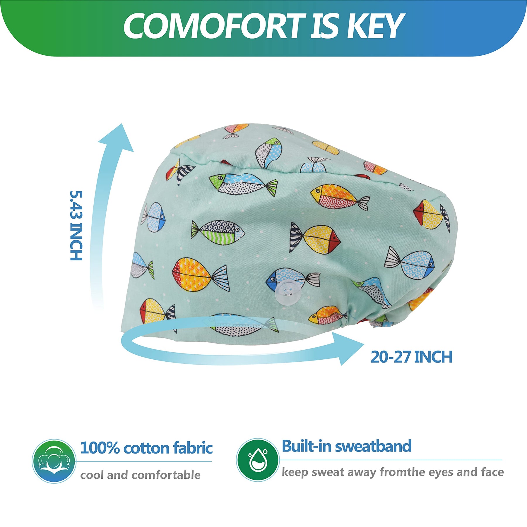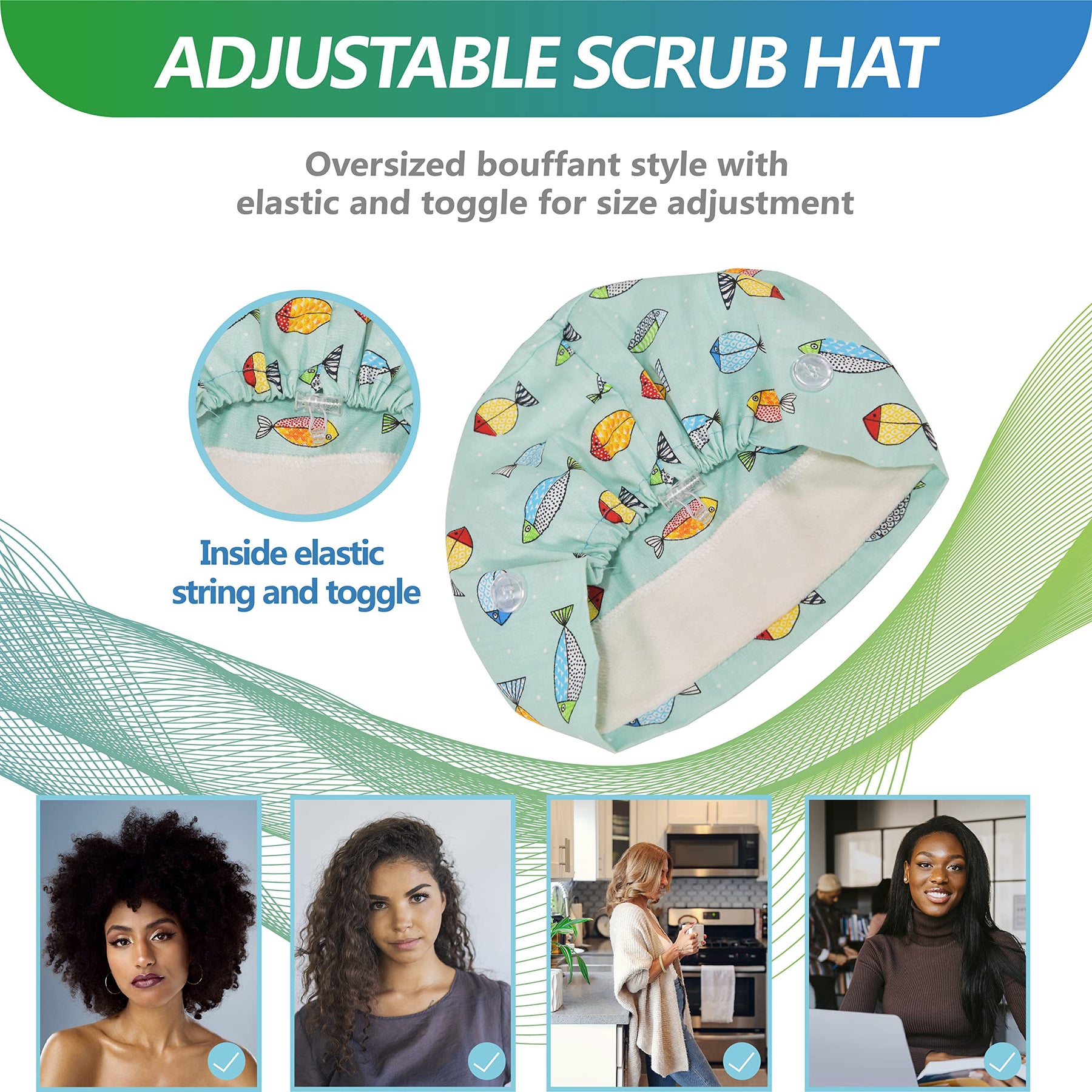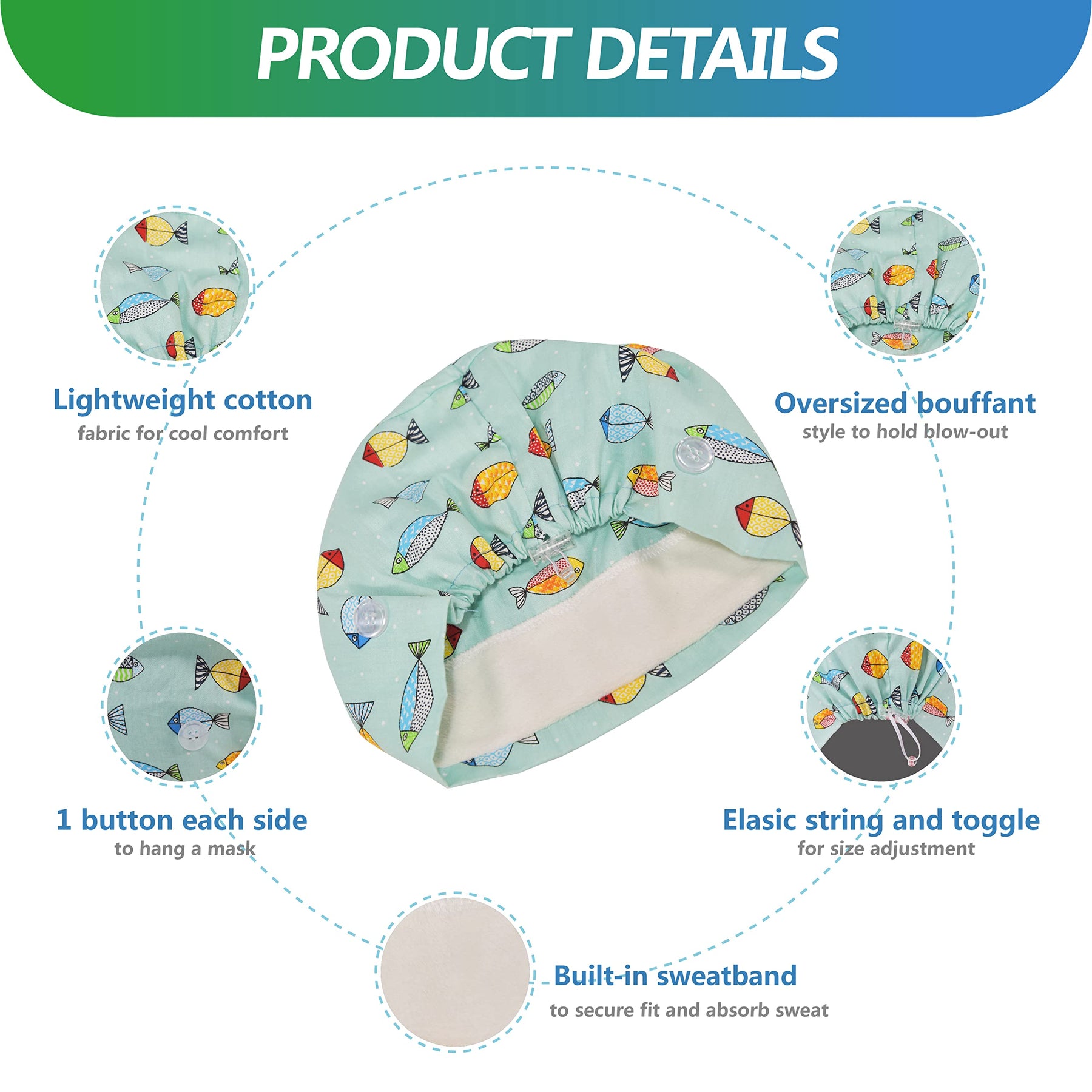 - Adjustable Size: Adjustable scrub cap with elastic band and adjustable buttons. In contrast to laced hats, the adjustable button design can be easily adjusted to fit your specific needs and ensure maximum comfort at all times. You can have more space to hold your thick and long hair, Adjustable hats to fit most people and a variety of hairstyles, for both men and women.
