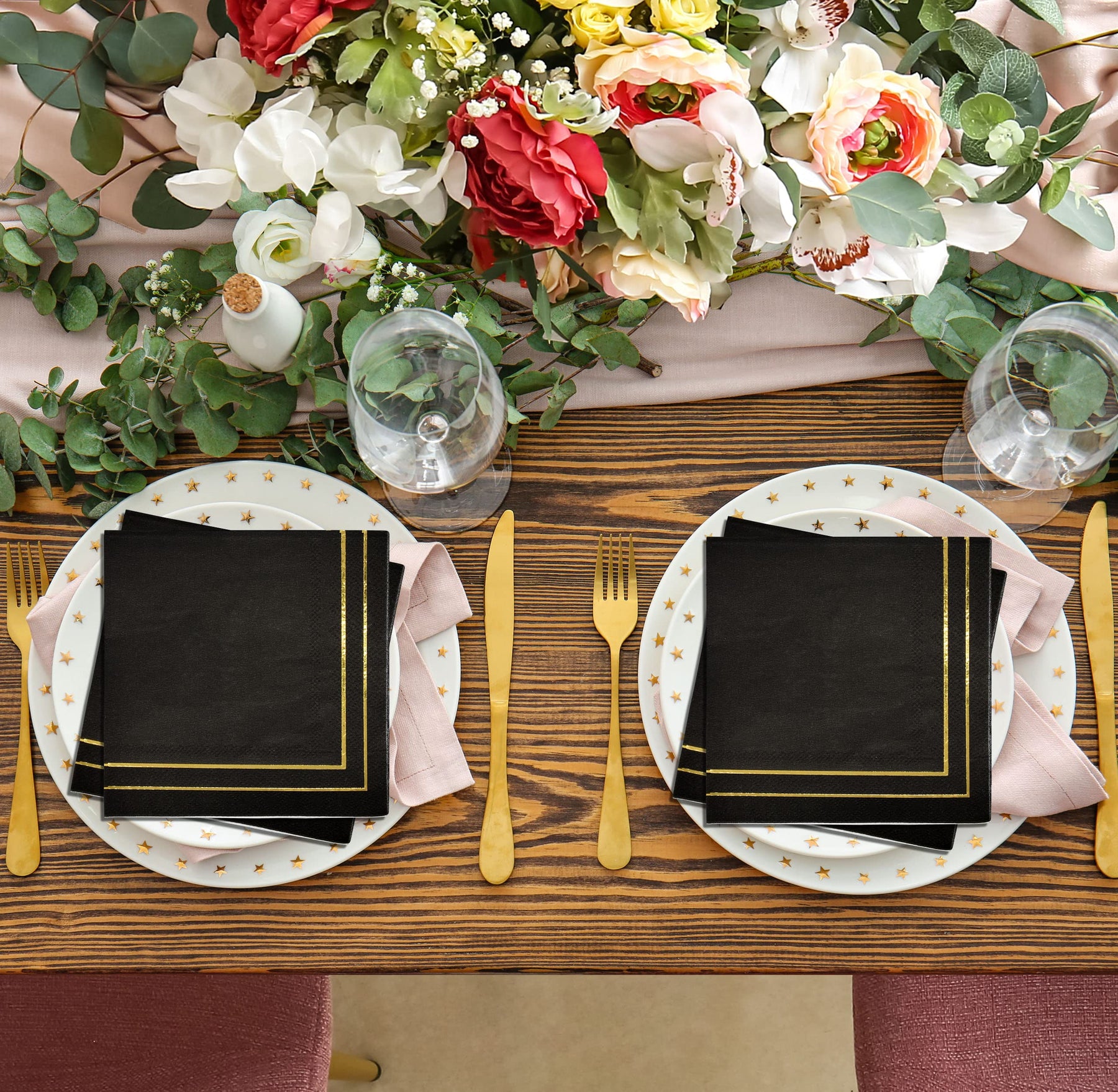 - Original Disposable Napkins – 100 Gold and Black Cocktail Beverage Napkins 3 Ply Metallic Gold Foil Trim Stripe Disposable Paper Dessert Napkin for Wedding Holiday Baby Shower Graduation Party Supplies Decorations by Gift Boutique