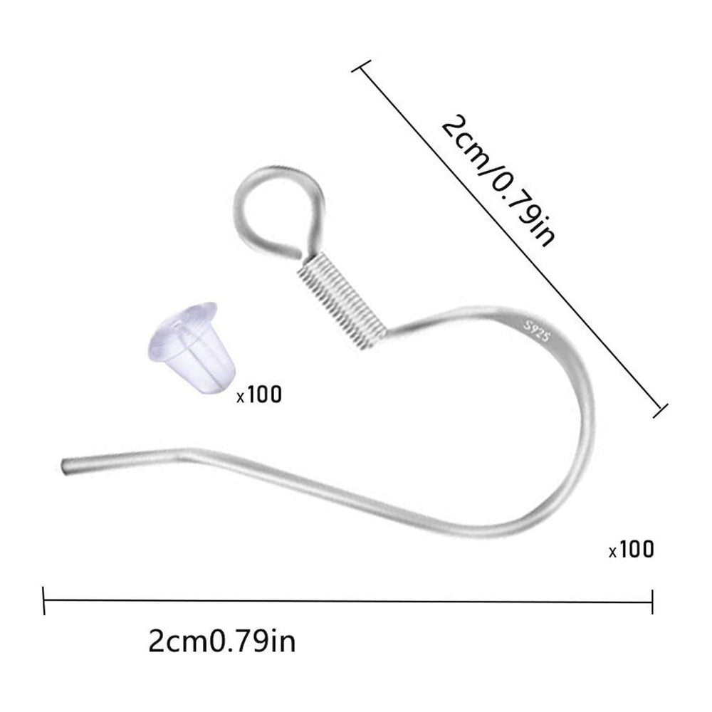 - Package: 100 PCS / 50 pairs 925 sterling silver earring hooks for jewelry making with 100 PCS rubber earring safety backs stoppers,Enough for your spare and replacement, Keep a long time use.