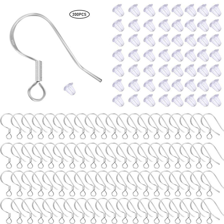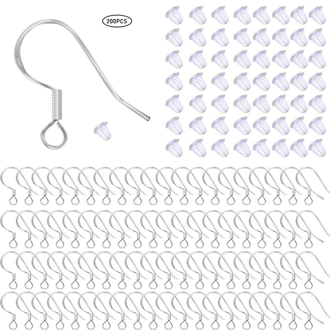 - Original Earring Backs & Findings – 100 Pcs / 50 Pairs 925 Sterling Silver Earring Hooks, Hook Ear Wires with 100 Pcs Clear Rubber Silicone Earring Safety Backs Stoppers for DIY Jewelry Making by None Brand