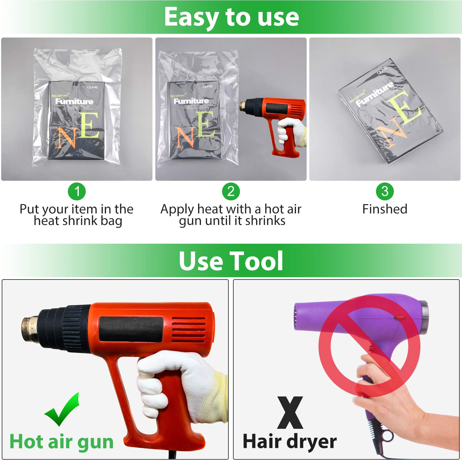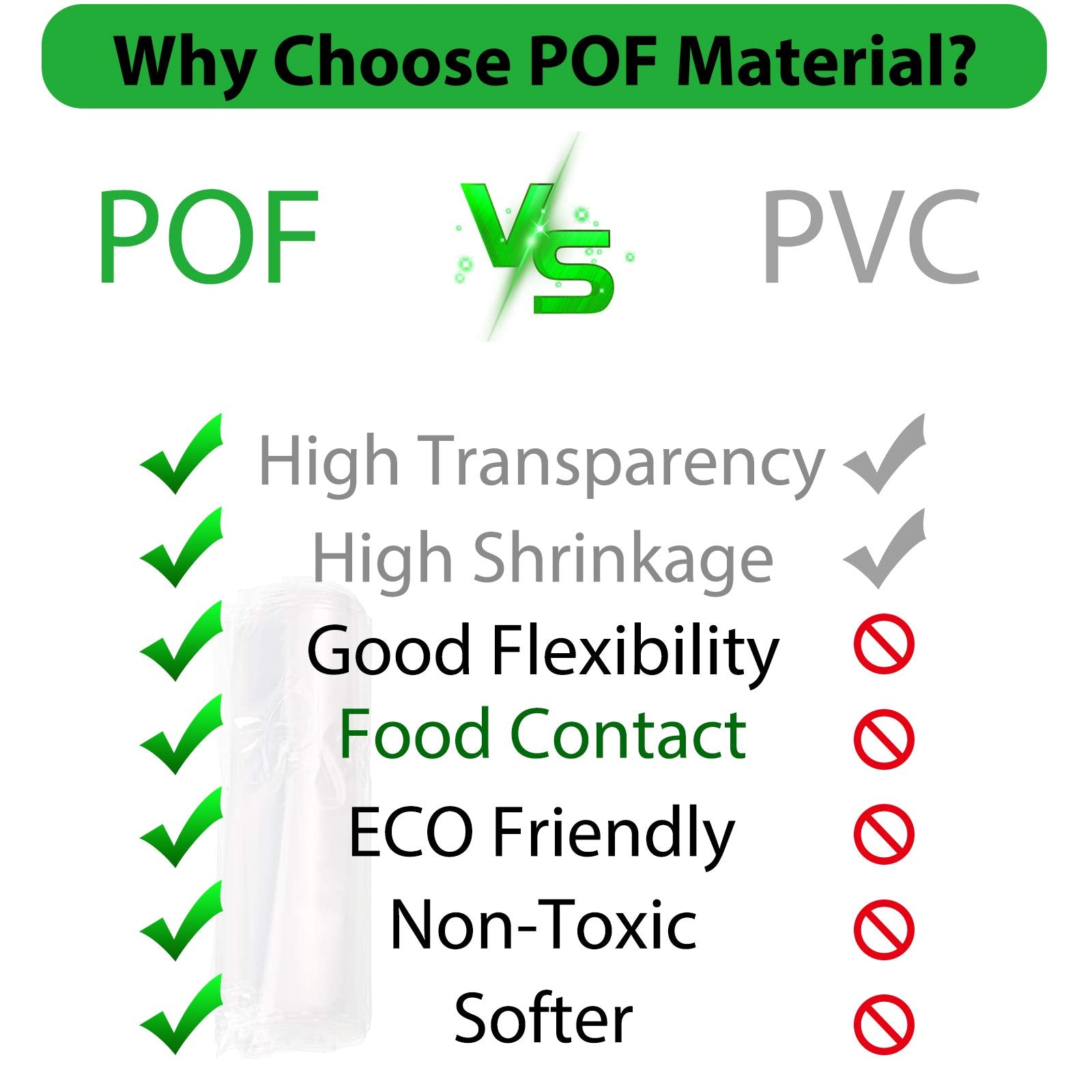 - Selective material: these heat shrink film wraps are made of poly (POF), no pungent smell, nontoxic, transparent design make it convenient to observe the inside items, the shrinkage temperature: 150°C - 180°C/ 302°F - 356°F
