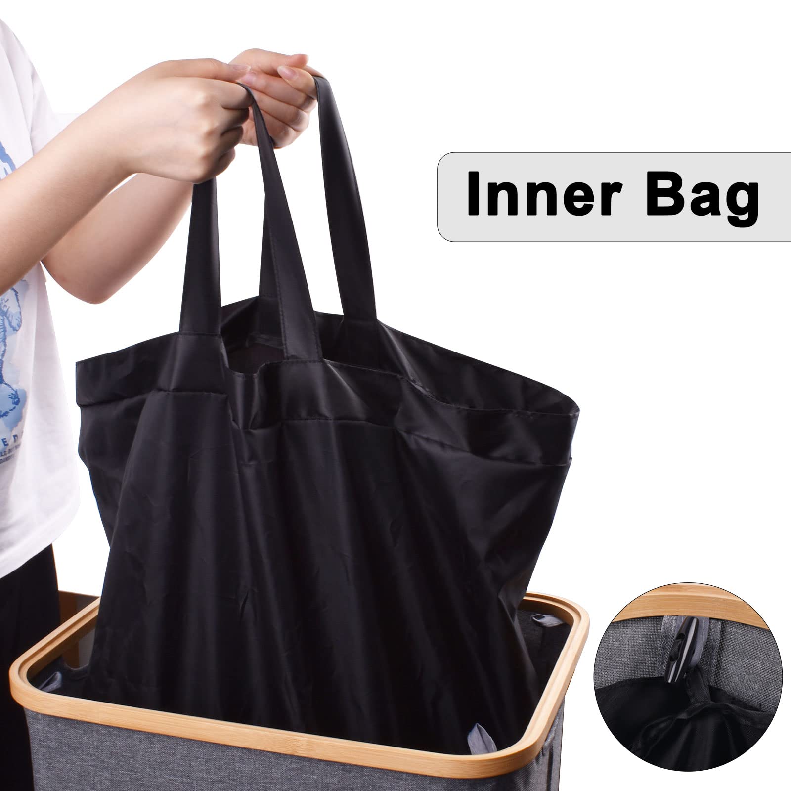 - Washable & Removable BagThe dirty clothes hamper with removable laundry bag and lining can prevent the sweat or dust of dirty clothes from directly contacting the bottom of the dirty clothes hamper. Removable laundry bag inside the collapsible laundry baskets for easy carrying. You can carry the clothes to the laundry room, bathroom, and other places easily with this bag. And the built-in laundry bag is washable.