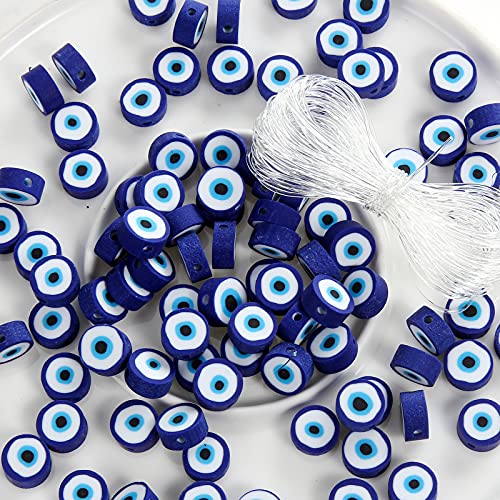 - Package Included:100pcs 10mm Blue Evil Eye Polymer Clay Beads with a roll of elastic string.
