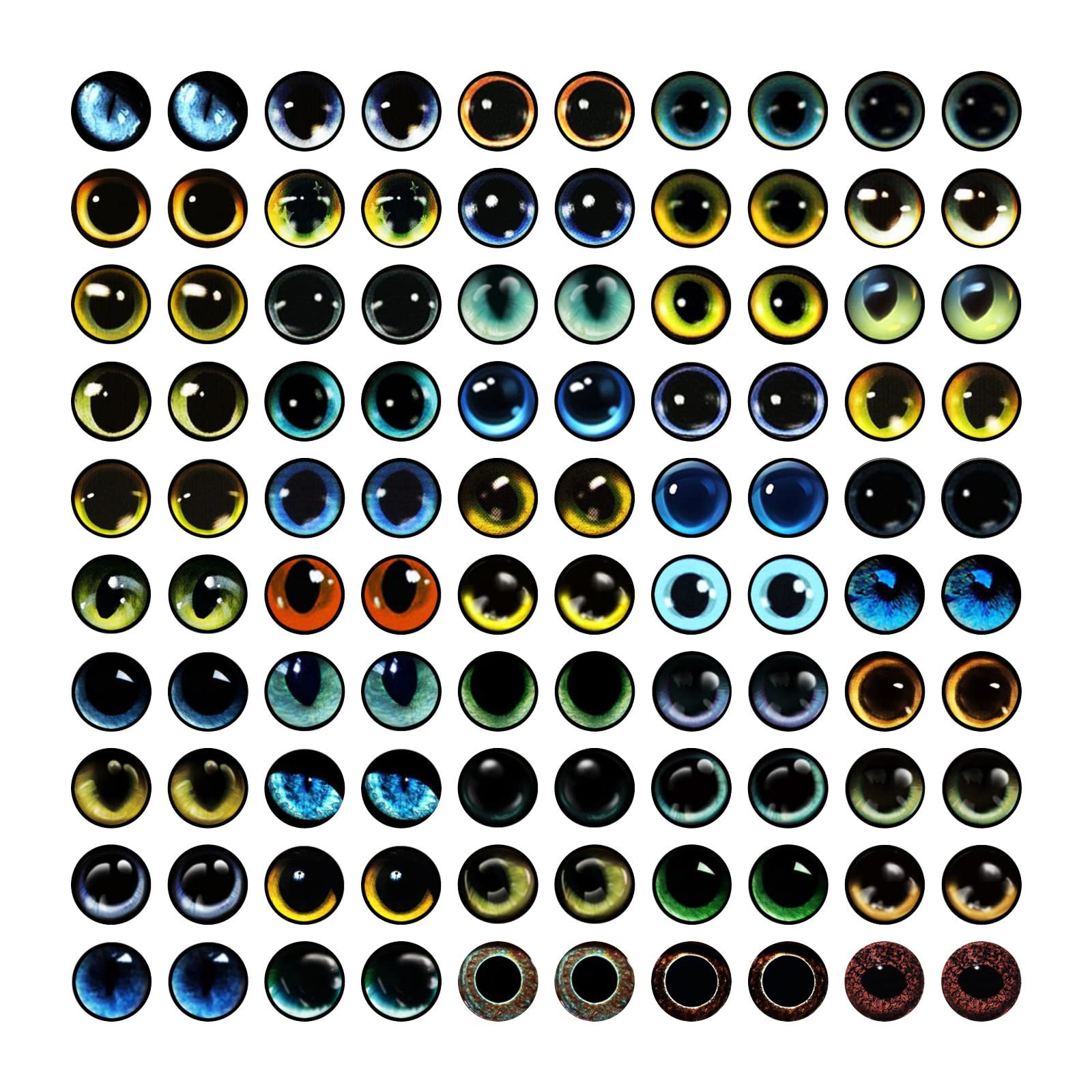 - What you get:100Pcs Eye glass cabochons, 50 styles, each style 2Pcs.Can be widely used as animal doll's eye like cat, dragon, snake, etc.