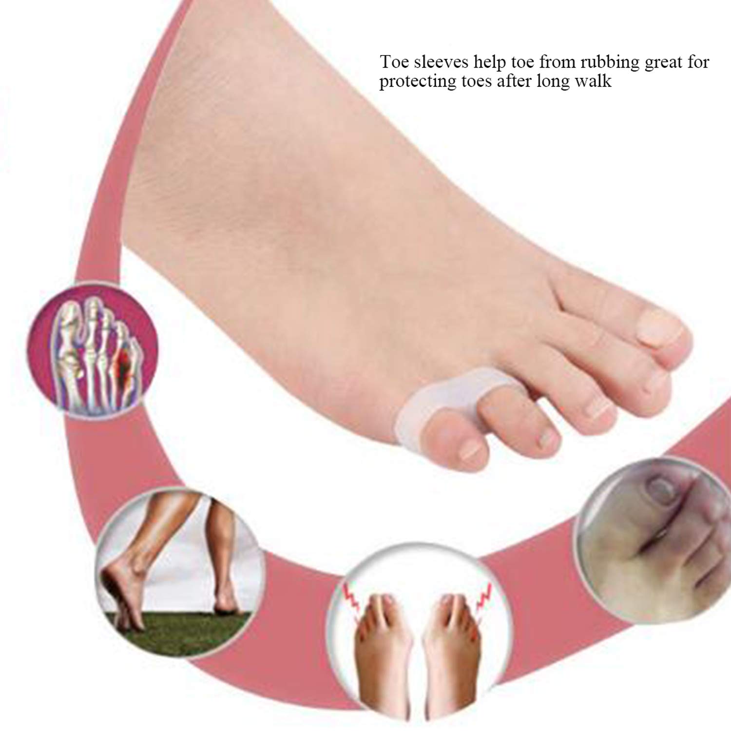 - COMFORTABLE SILICONE MATERIAL: fits on our small toes, soft and skin-friendly silicone material, let you enjoys the pleasure of light walking