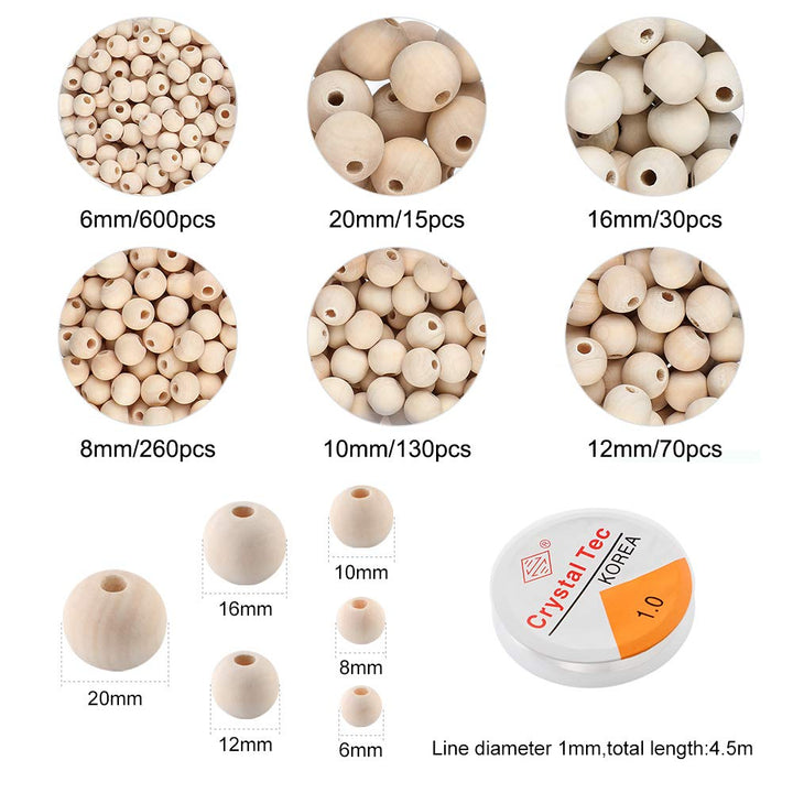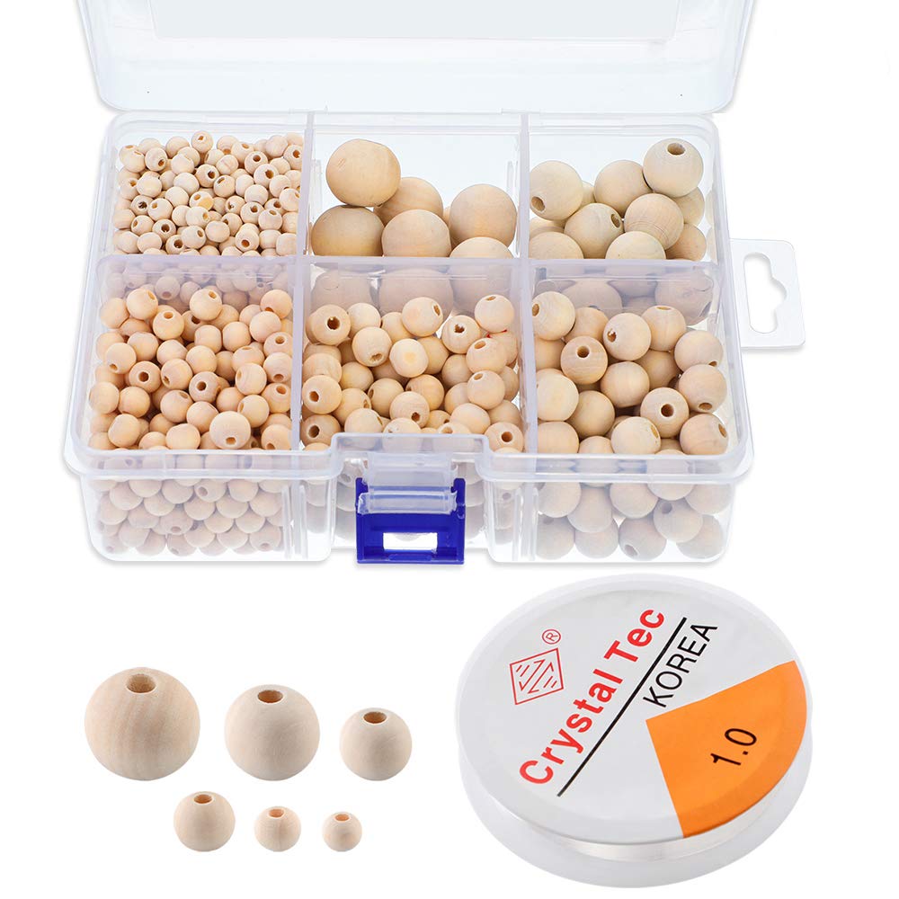 - Original Unfinished Wood – 1105 Pcs Wooden Beads for Crafts 6 Sizes Unfinished Natural Wood Beads with Crystal Elastic Line Beads for Jewelry Making, Garland Macrame, DIY Home Farmhouse Decor(6mm, 8mm, 10mm, 12mm, 16mm, 20mm) by Litthing