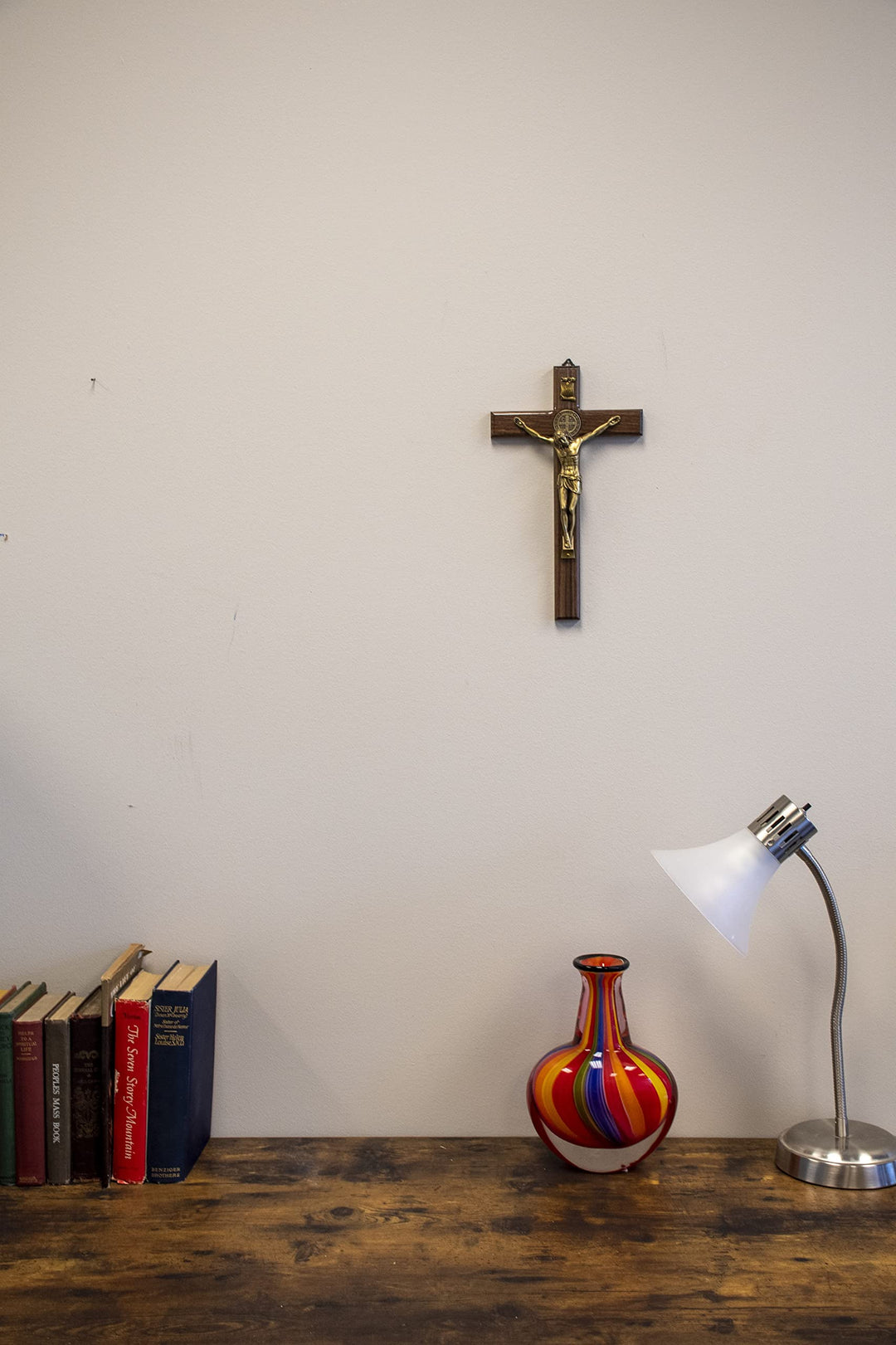 - Original Wall Crosses – 12 Dark Wood St. Benedict Crucifix with Metallic Corpus and Embedded St. Benedict Medals (Antique Brass) by Venerare
