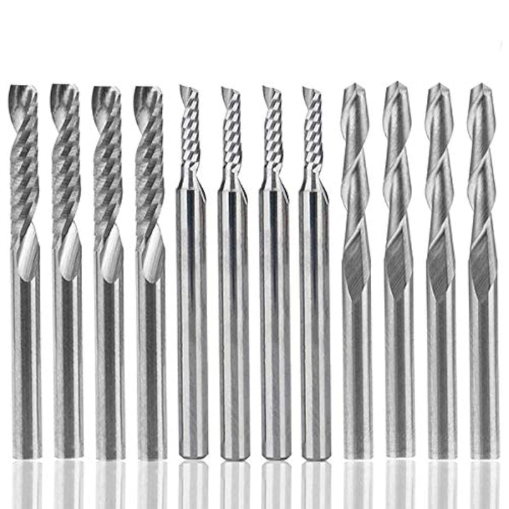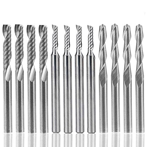 - Original Spiral – 12 PCS Carbide END Mill Cutter, 4 PCS 1/8 CNC Router Bits Double Flute Tools + 8 PCS 1 Flute Single Edged Milling Cutter (2 Types) for Nylon, Resin, ABS, Acrylic, PVC, MDF, Hardwood by AFUNTA