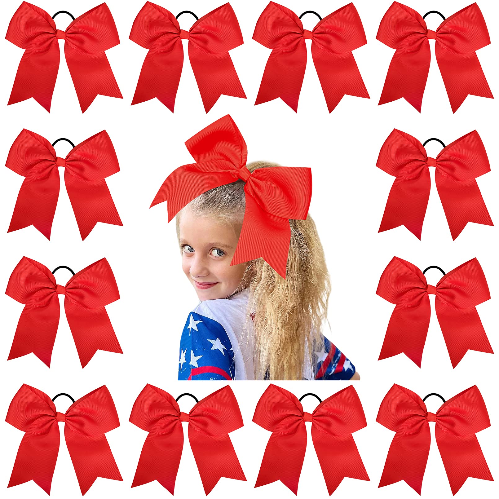 - Original Categories – 12 Pcs Large Cheer Bows 8 Bulk Hair Bow Accessories with Ponytail Holder for Girls High School College Cheerleading by Aileam
