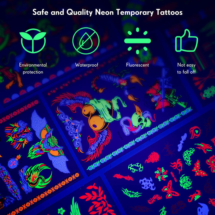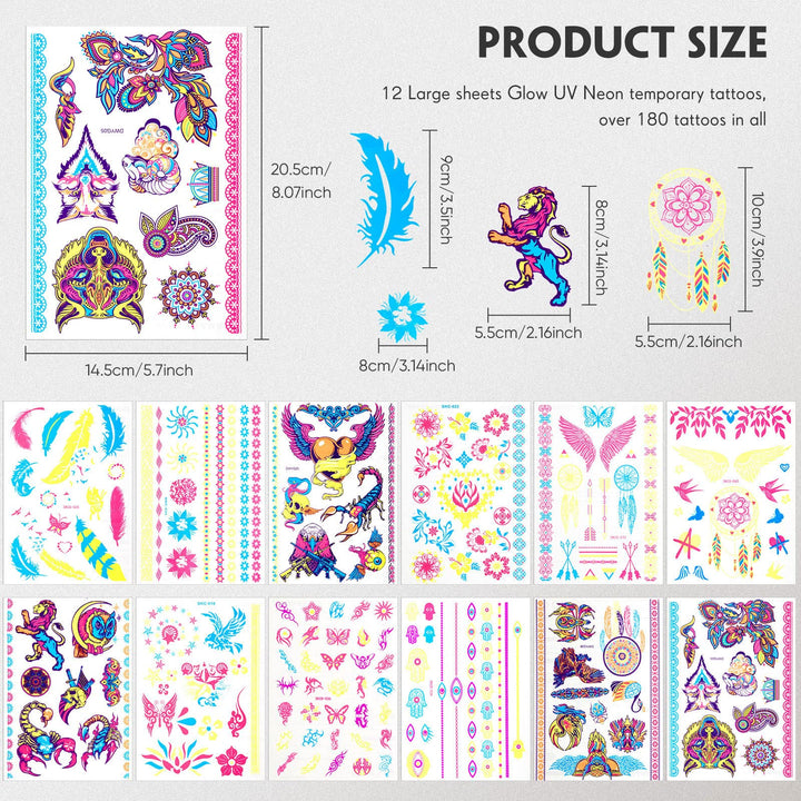 - Original Categories – 12 Sheets glow in the dark tattoo neon temporary makeup,Rave festival accessory,Fake face butterfly tattoo uv blacklight for women Party Supplies (Harajuku Style) by Maitys