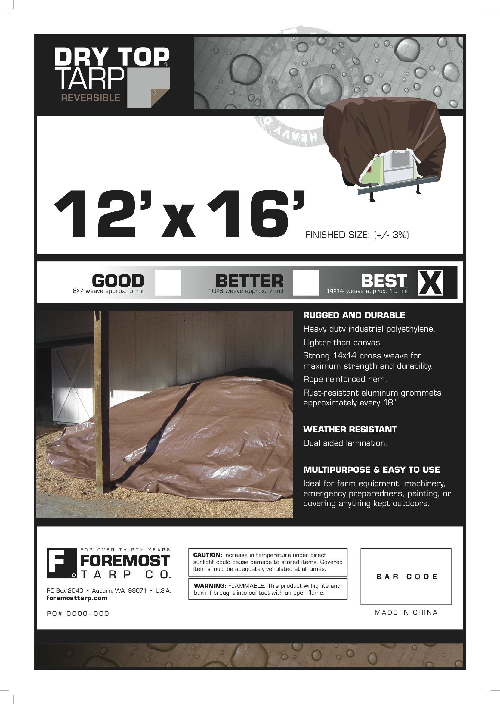 - Original Tarps – 12' x 16' Heavy Duty Silver/Brown Reversible Full Size 10-mil Poly Tarp item #212167 by Dry Top