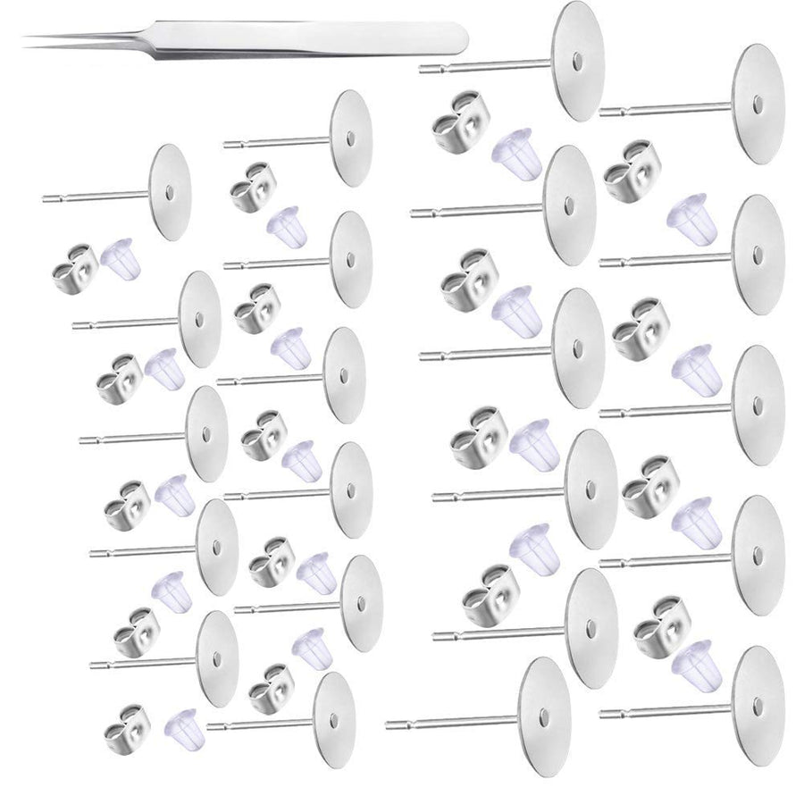 - Original Women – 1200 PCS 5MM Hypoallergenic Stainless Steel Earrings Posts Flat Pad Blank Earring Pin Studs with Butterfly Earring Backs and Silicone Bullet Earring Backs for Jewelry Making Findings by Waybas