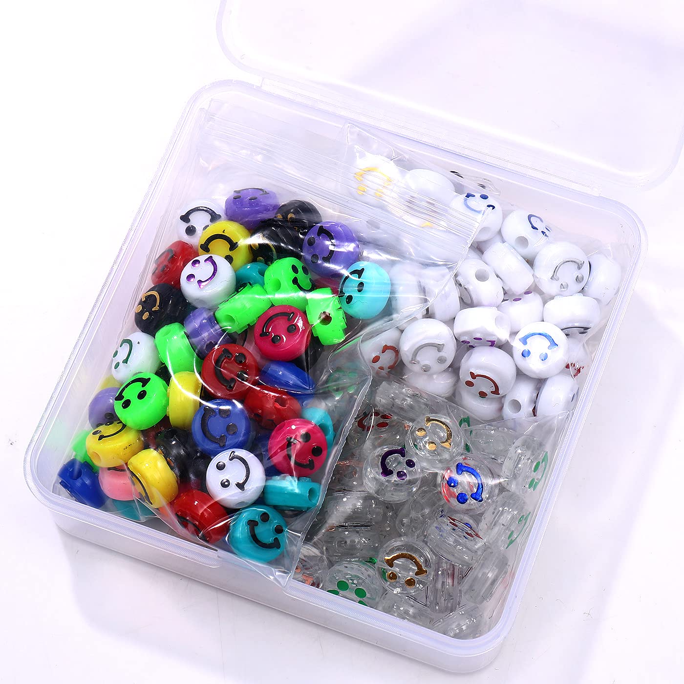 - Colorful Happy Beads -- You will receive 200 pieces happy face beads including 110pcs acrylic happy face disc beads, 30pcs flower beads, 30pcs heart beads and 30pcs clay round beads, with 10meters crystal rope and plastic box, vibrant colors and enough quantity to meet your different DIY making needs