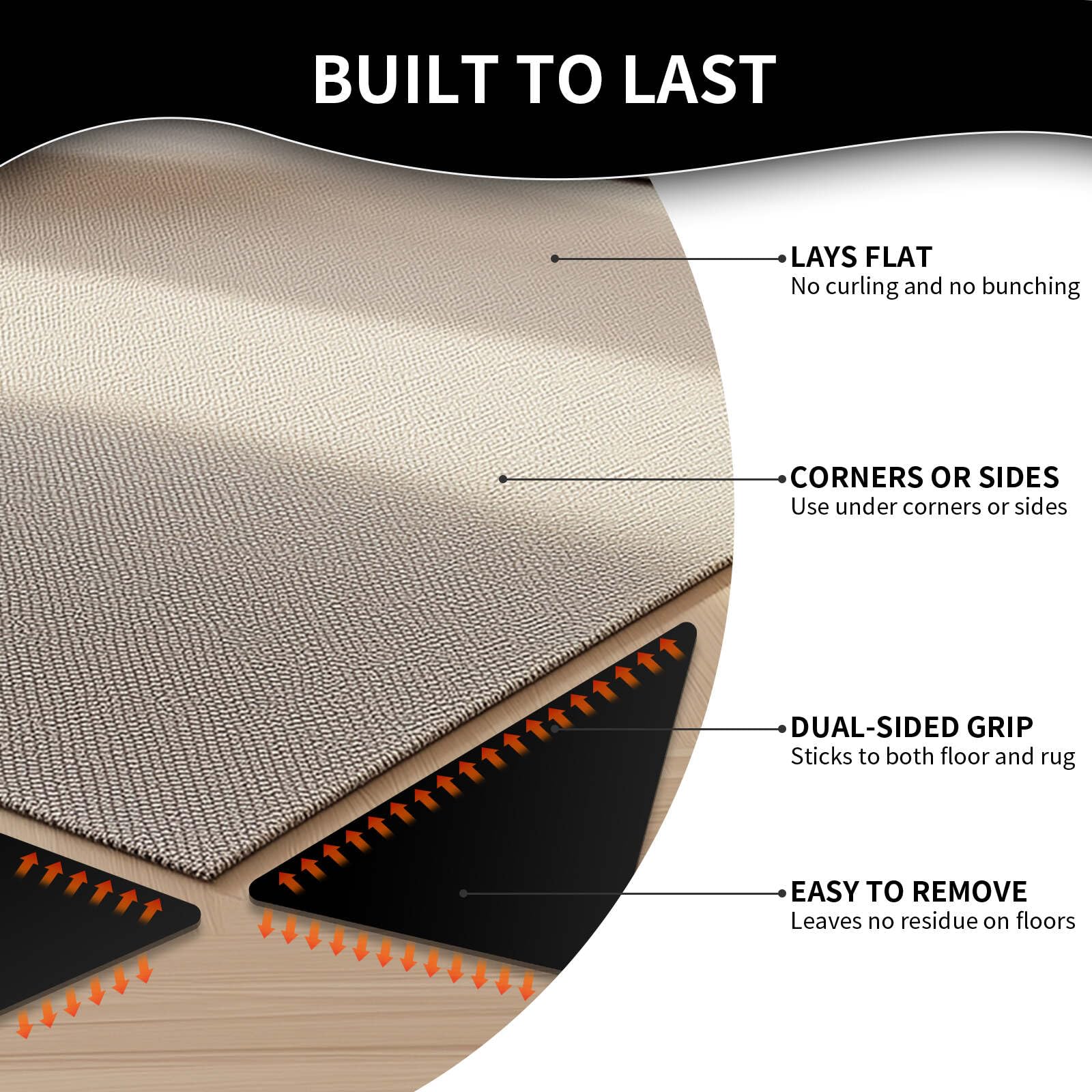 - Original Rug Grip Tape & Pads – 12PCS Non Slip Rug Grippers, Rug Pads Grippers, Rug Tape Anti Slip Carpet Pads Rug Corner Gripper for Hardwood Floors/Tile/Mats/Keep Area Rugs Flat and Easily Peel Off (Black) by MSXCSE