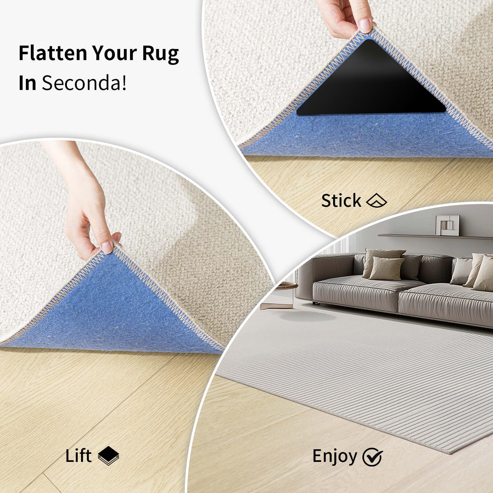 - Triangular Design & Anti-SlipThese rug grippers for area rugs with triangular design, strong double-sided adhesion, which can perfectly fit the corners of your carpet, greatly increasing the contact area, providing excellent adhesion and grip, more anti-slip than normal rug tape, firmly fixed to avoid slipping accidents, keeping stable and improving safety.