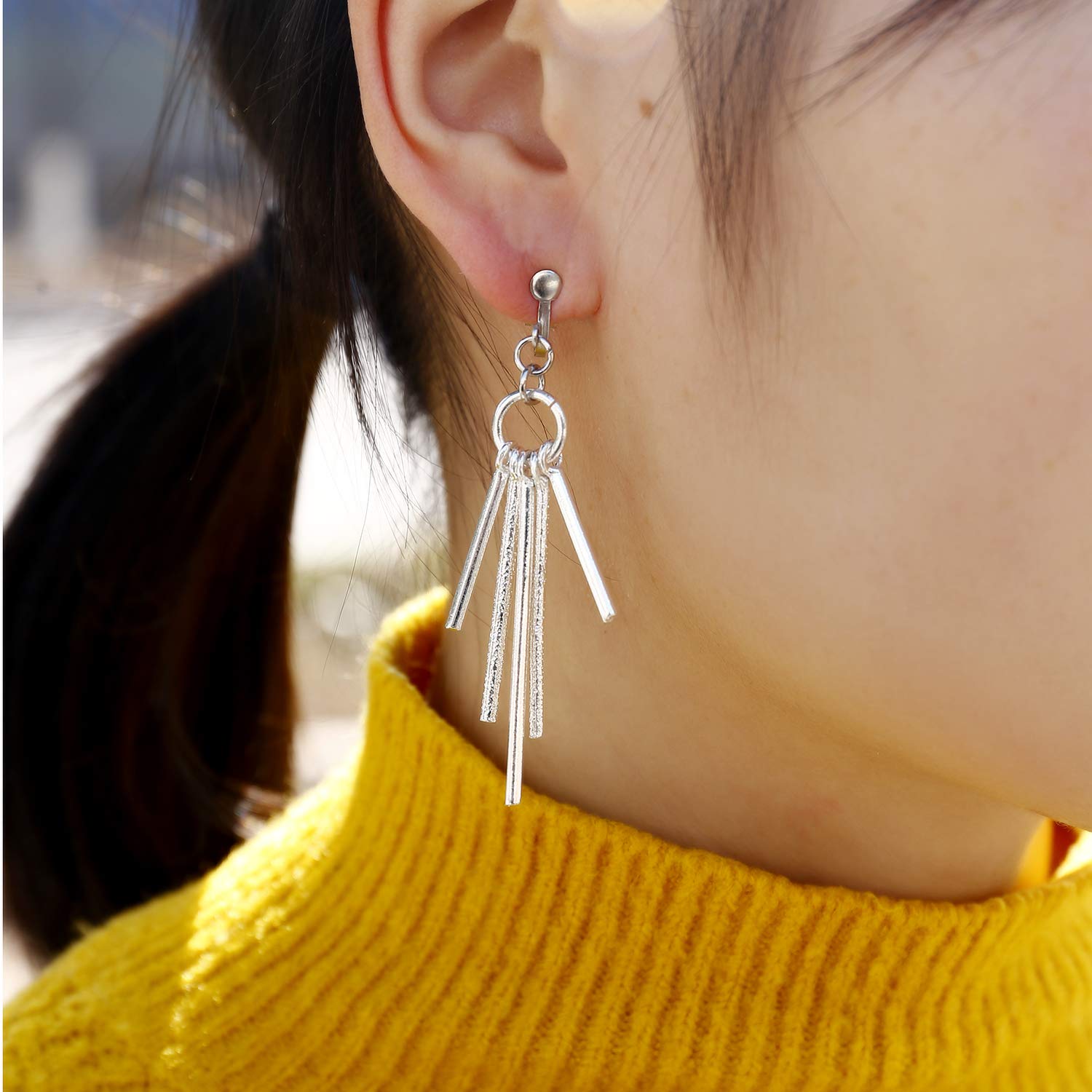 - HYPOALLERGENIC EARRINGS : High quality materials ,Made of eco-friendly material,they are nickel free earrings. Hypoallergenic.Great Plating with white gold, Lasting Color Retention.Come with Rubber pads.Non-pierced, More comfortable.