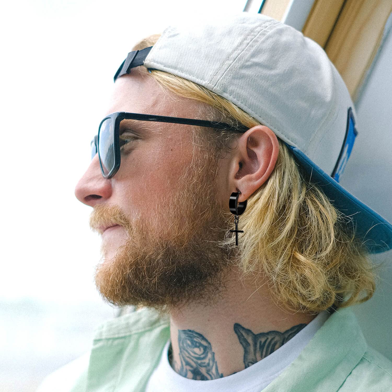 - Earring Set Include - 15 pairs of men's earrings and ear studs come with a beautiful box, 4 pairs of circle earring hoops, 3 pairs of black dangle-hinged hoop earrings, and 8 pairs of different shapes of black ear studs. More wearing choice, suitable for men and women.