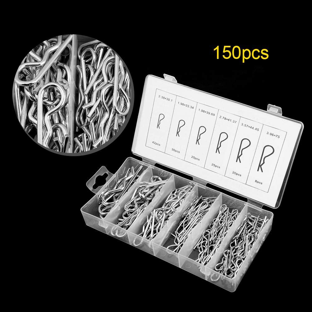 - Original Cotter Pins – 150pcs Carbon Steel Galvanized R Cotter Pin Assortment Hitch Pin Clips Fastener Set 6 Different Sizes with Clear Re-sealable Storage Case for Tow Tractor Light Truck Lawn Mower by Walfront