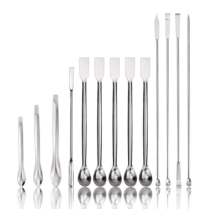 - Versatile Set: This 15-piece stainless steel lab spoon kit features dual-head spatulas, small spoons, a U-shaped spoon, and double-ended micro spoons—ideal for various laboratory applications