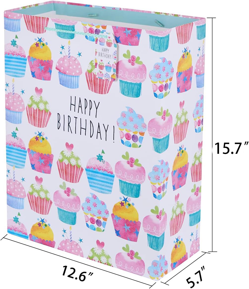 - Original Gift Bags – 16.5 Extra Large Gift Bags for Birthdays Party with Tissue Paper(2 Pack, Cupcake) by SUNCOLOR