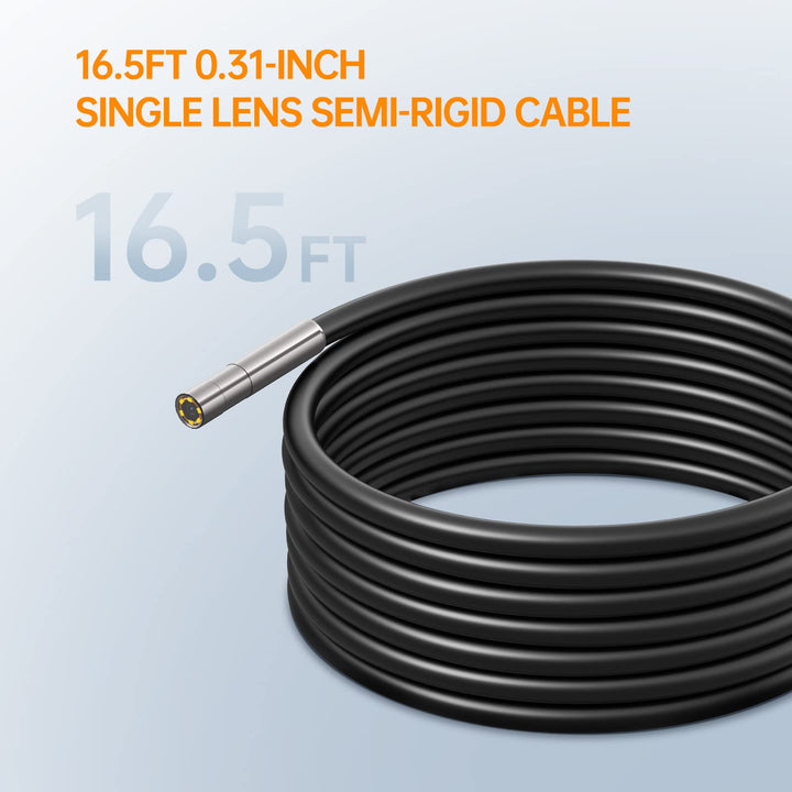 - 16.5FT Semi-Rigid Cable Probe - Can be folded to different shapes and reach deep inside the inspection areas.