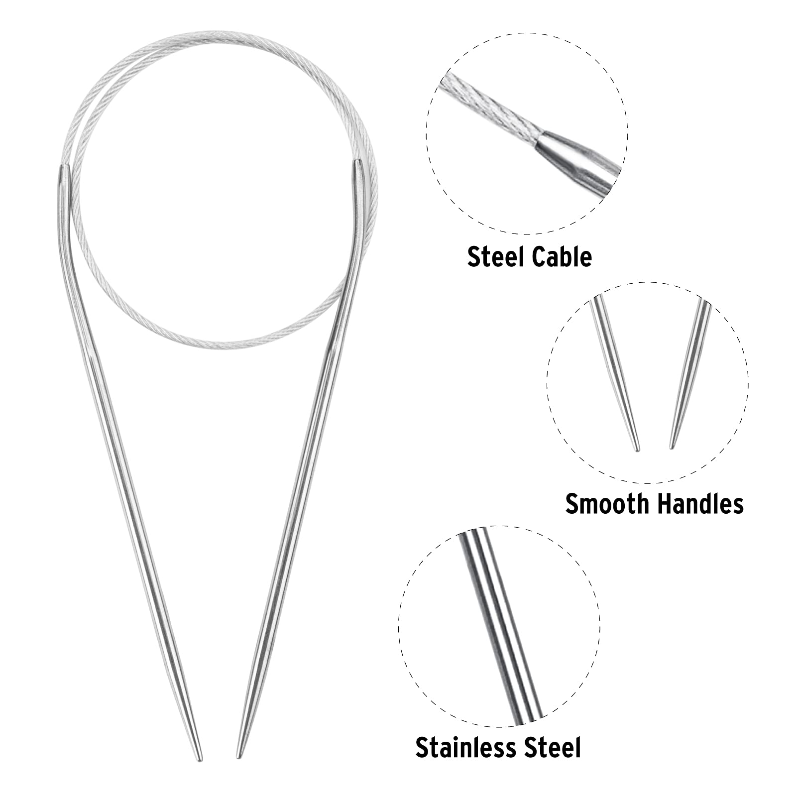 - Why choose stainless steel circular knitting needles--Super light and provide a smooth ride for your stitches. Yarn is easy to manager and maneuver with in a circular when you knitting the item.
