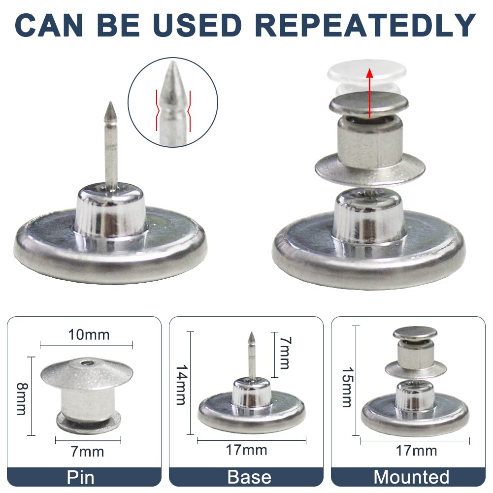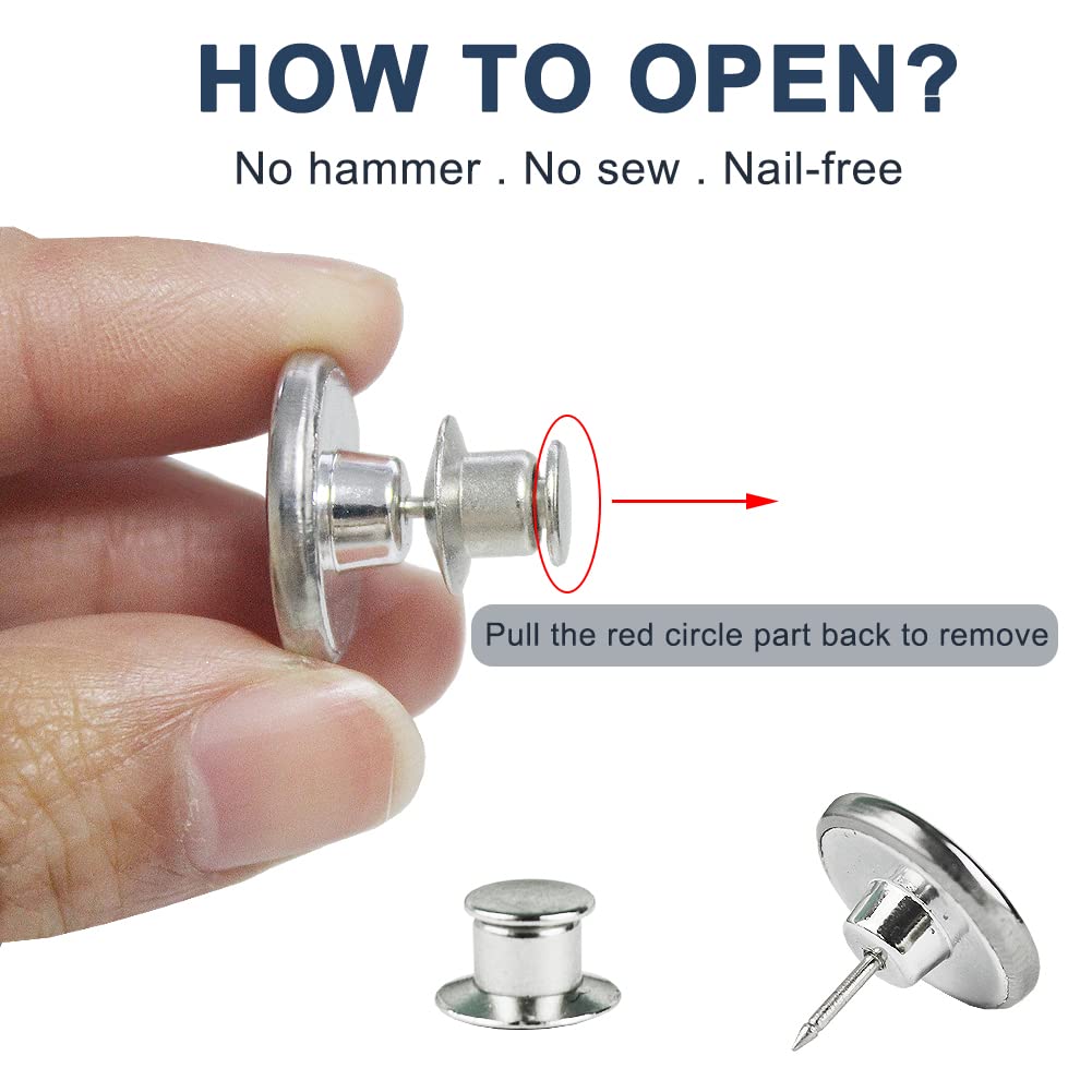- Original Buttons – 16 Sets Button Pins for Jeans,Jean Buttons Pins for Loose Jeans,No Sew and No Tools Instant Replacement Snap Tack Pant Button, Reusable and Adjustable Metal Pants Button Tightener by Tmtamye