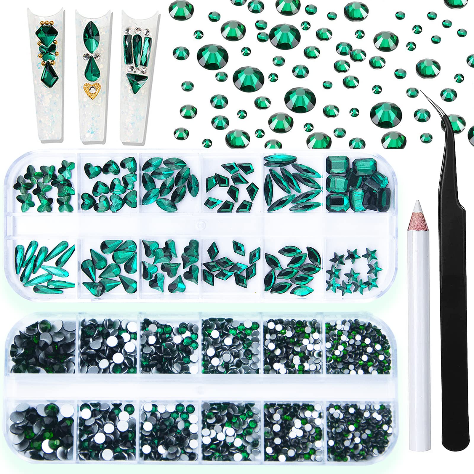 - Original Rhinestones & Decorations – 1920Pcs Emerald Green Rhinestones for Nails, Green Flatback Rhinestones Gems Crystals Glass Stones Multi Shapes Sizes Nail Rhinestones with Tweezers Pen for Nail DIY Crafts Clothes Shoes Jewelry by Tatiwoo