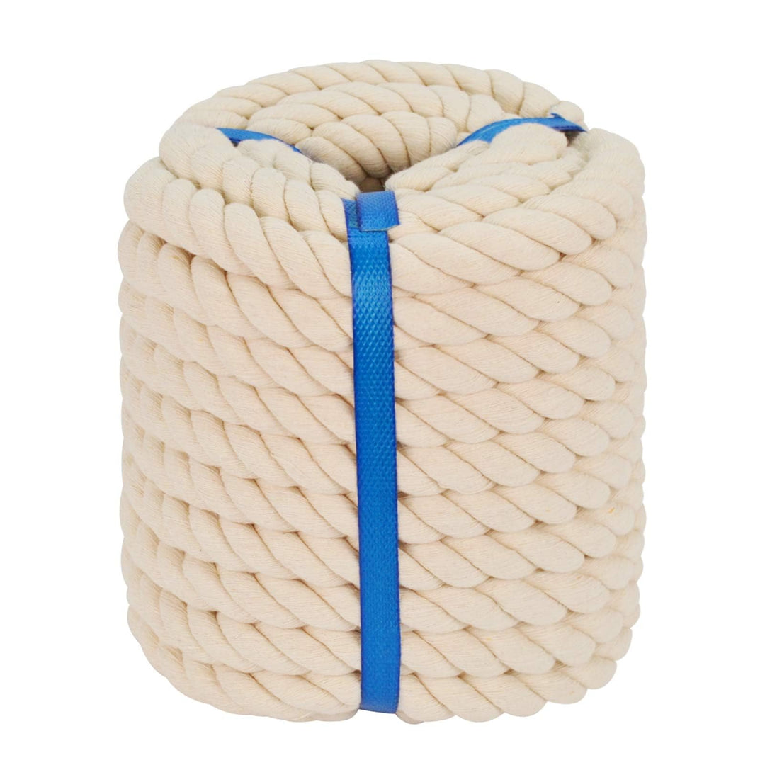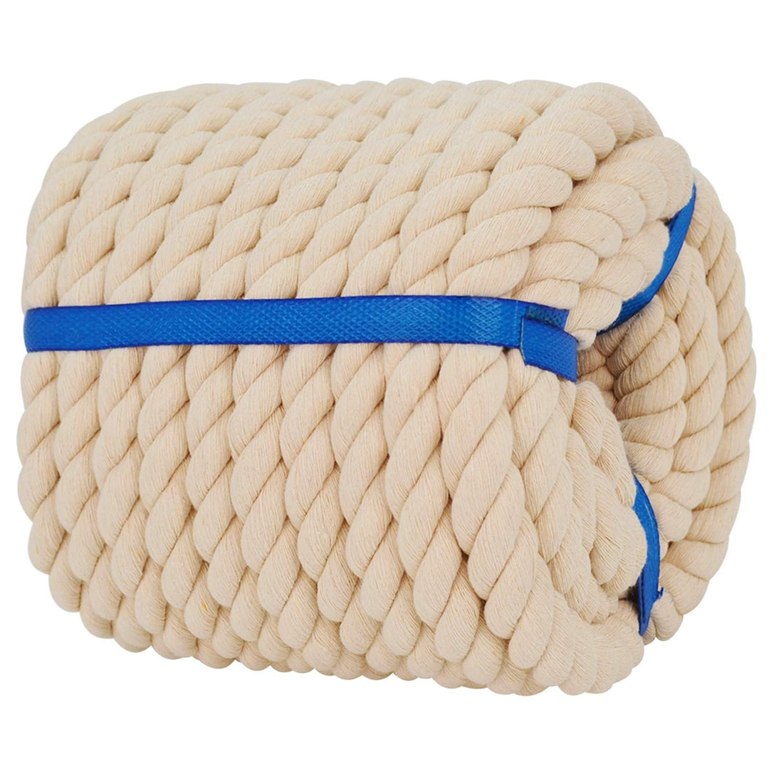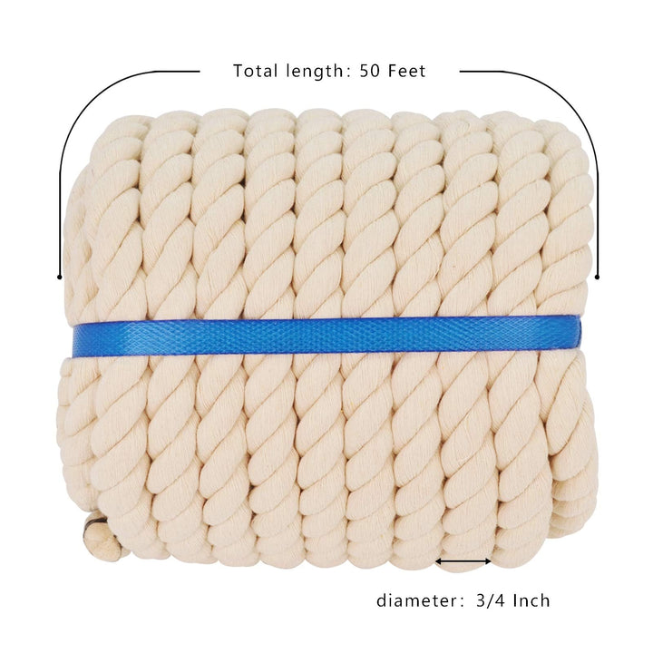 - TWISTED COTTON ROPE: 3/4 inch, Length: 50 feet. easy to tie knots or cut into the length that you want