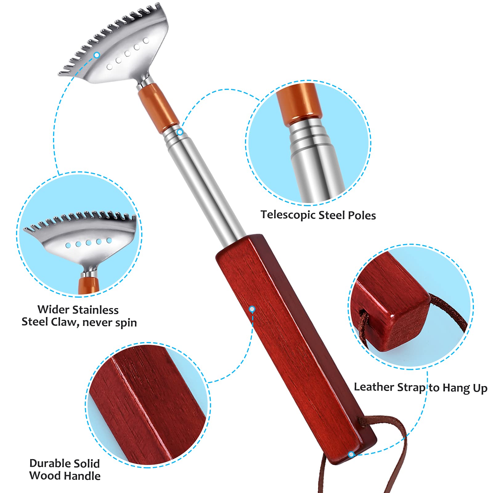 - Really Sturdy: Constructed of solid wood and premium stainless steel, ensure the back scratchers more sturdy and durable. The wooden handles are thick and square, make it easy to hold and better anti-slip performance.