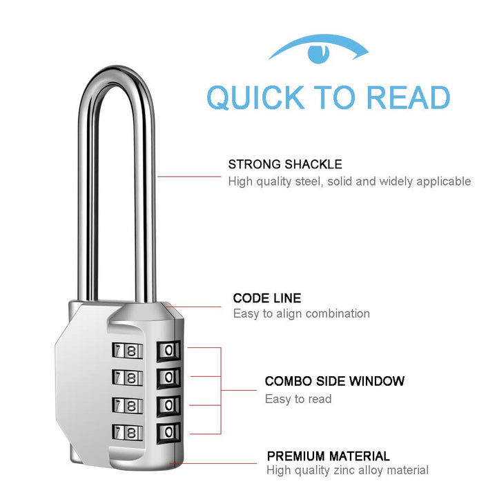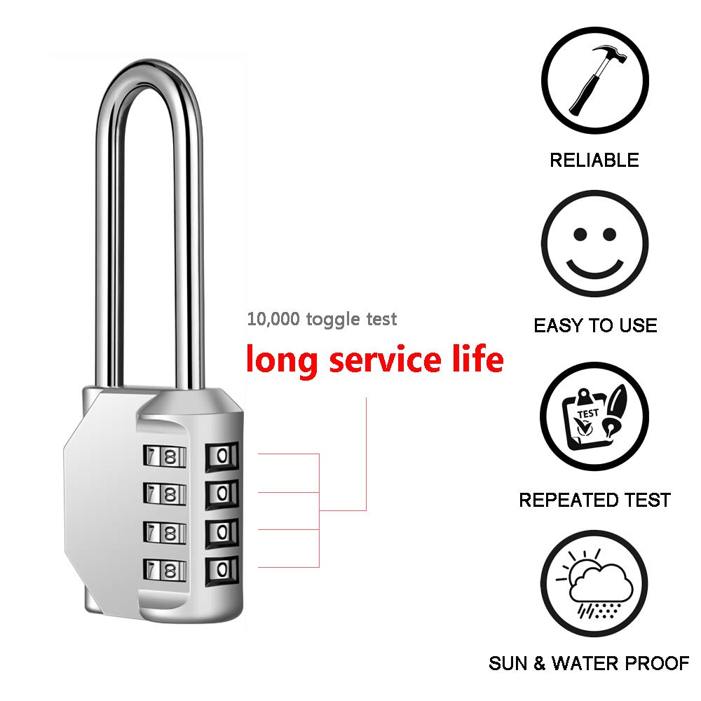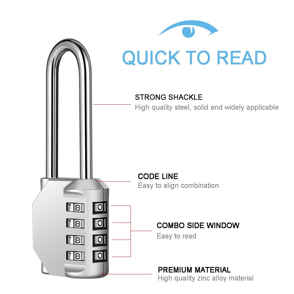 - Long Shackle Versatility: The upgraded longer shackle enhances functionality for a variety of uses. This versatile storage combination lock is ideal for gym, sports, and school locker, as well as securing gate, shed, fence, backyard, garden, warehouse, toolbox, cabinet and yeti cooler.