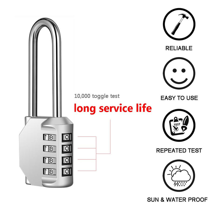 - Sturdy and Durable: The combo padlock is crafted from hardened zinc alloy and plated steel, featuring a cast metal body. It is rust-resistant, cut-resistant, and weatherproof.
