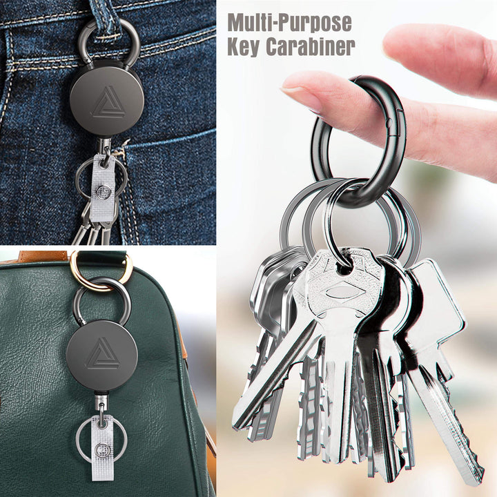 - [INNOVATIVE CARABINER CLIP] - Additional key rings are easy to attach with our carabiner keychain. With 2 badge reels and carabiner clips, these ID badge holders are easily attached to bags, belts, purses etc…