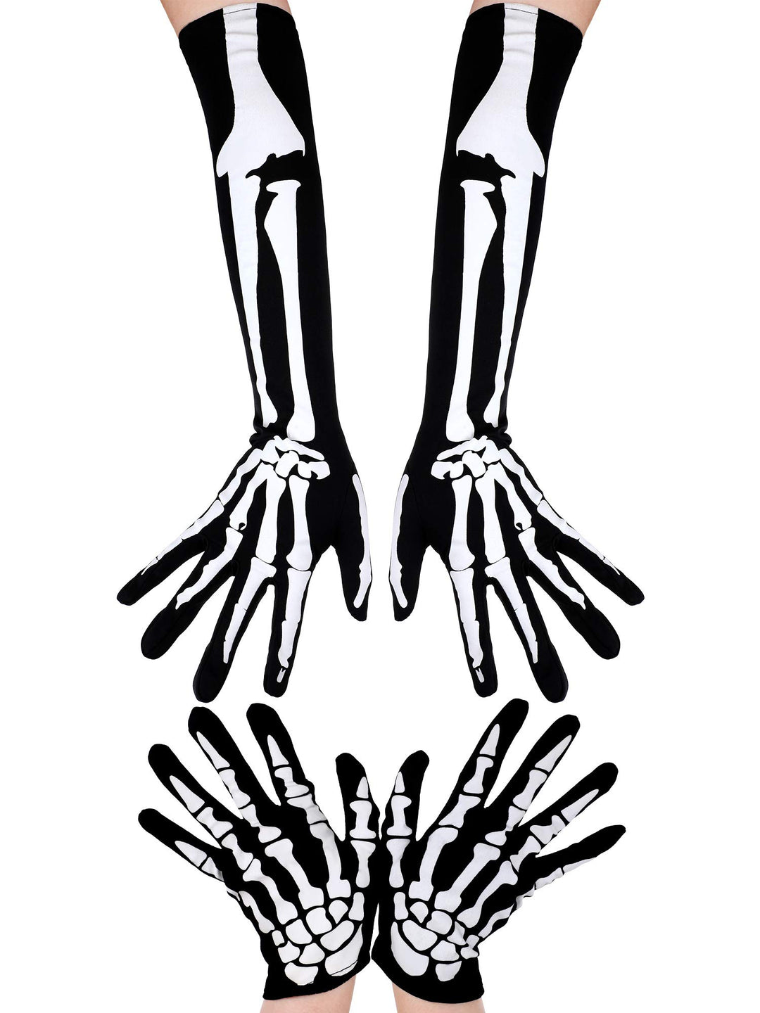 - Original Gloves – 2 Pairs Halloween Skeleton Gloves Long Short Skull Claw Ghost Bone Gloves for Halloween Cosplay Party Props by Boao