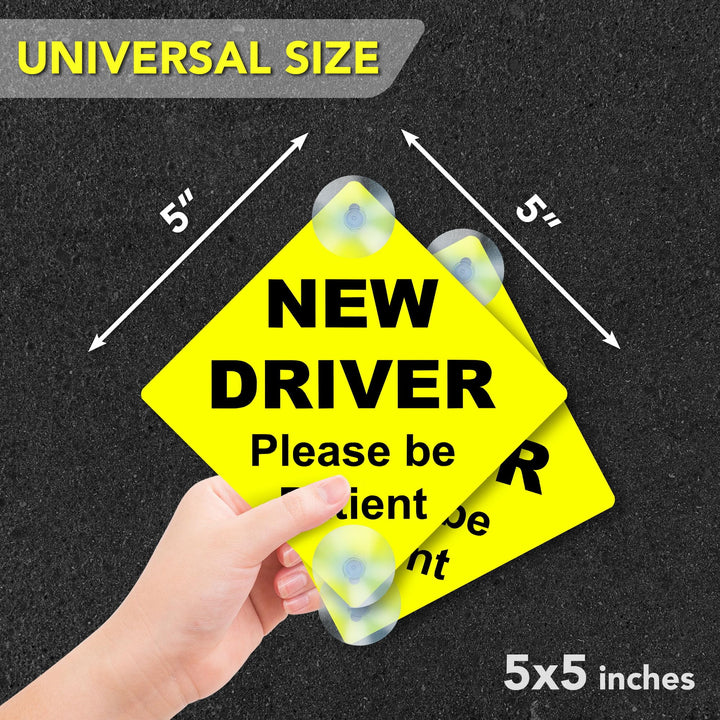 - Original Decals – 2 PC New Driver Sign - 5 x 5 Teen Driver Please Be Patient Car Window Signs with Suction Cups - Student Driver Signs for Car - Yellow Rookie Car Signs by DIMARONGTON