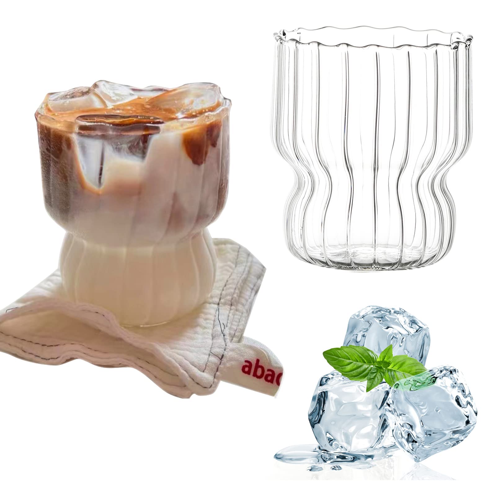 - Size and Capacity :The origami style glass cup size: 9 x7.6cm/3.5x3inch; Capacity: 260ml/8.8Oz.Transparent ice coffee cups with ripple, fashionable and exquisite. Since the size is manually measured, please allow an error of 1-2cm.