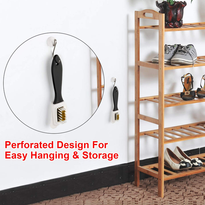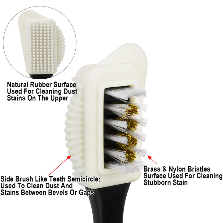 - 4 Different Design Usage Methods: Brass & Nylon Bristles Surface Used For Cleaning Stubborn Stain, Such As Thin Fine Suede Etc.; Natural Rubber Surface Used For Cleaning Dust Stains On The Upper; It Has 2 Protruding Surfaces That Will Help You Clean In Corners, Crevices, And More Difficult Areas; Long Handle Design: Makes The Brush Easier To Hold & Move, Handles Keep Your Hand In A Natural Position To Prevent Fatigue, It Is Easier To Clean All The Small Corners.