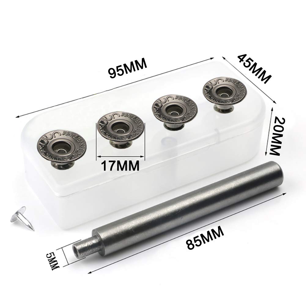 Quantity: this package includes 20 pieces jeans buttons, a base, a rod and a storage box.