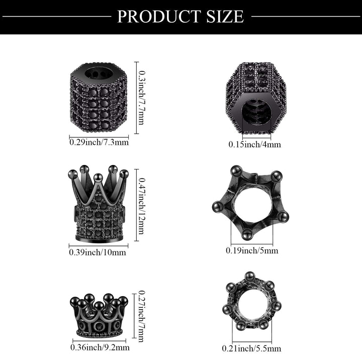 - What you will get: there are 20 pieces black color rhinestone charms in our package, they are in 3 different styles, including 8 x hexagon spacer beads, 8 x king crown charms beads and 4 x tiny crown charms, enough quantity for you to choose and match, meeting your various jewelry making needs