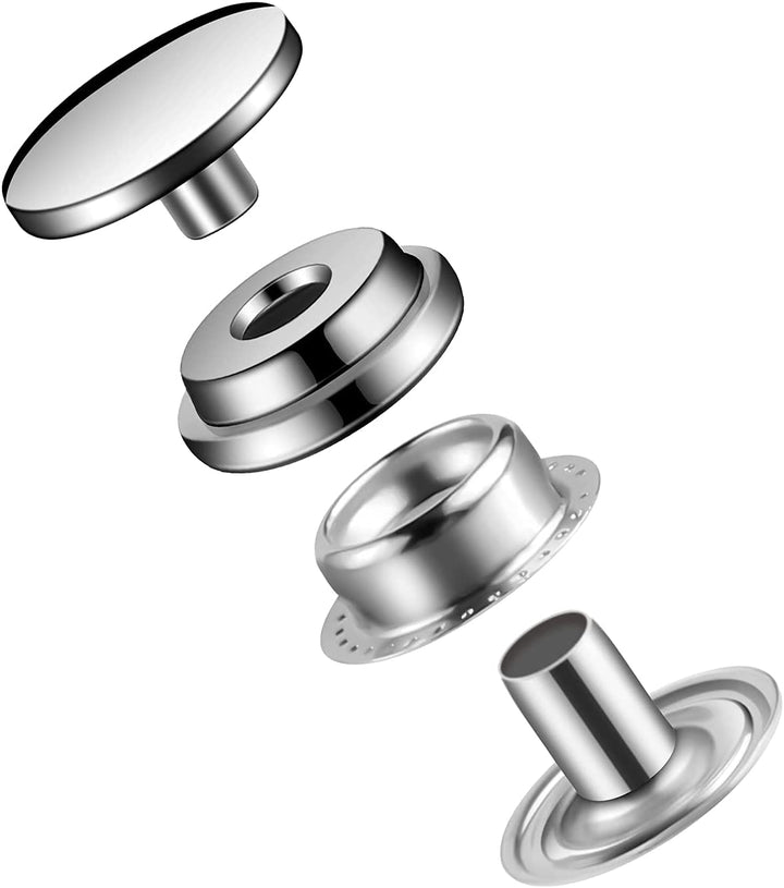 - Original Snaps – 200 Pcs (50 Sets) Leather Snap Fastener Kit Tool 5/8 inches (15mm) Snaps for Leather Press Studs Stainless Snap Buttons for Bag, Jeans, Clothes, Fabric (Silver+Bronze) by Moocci