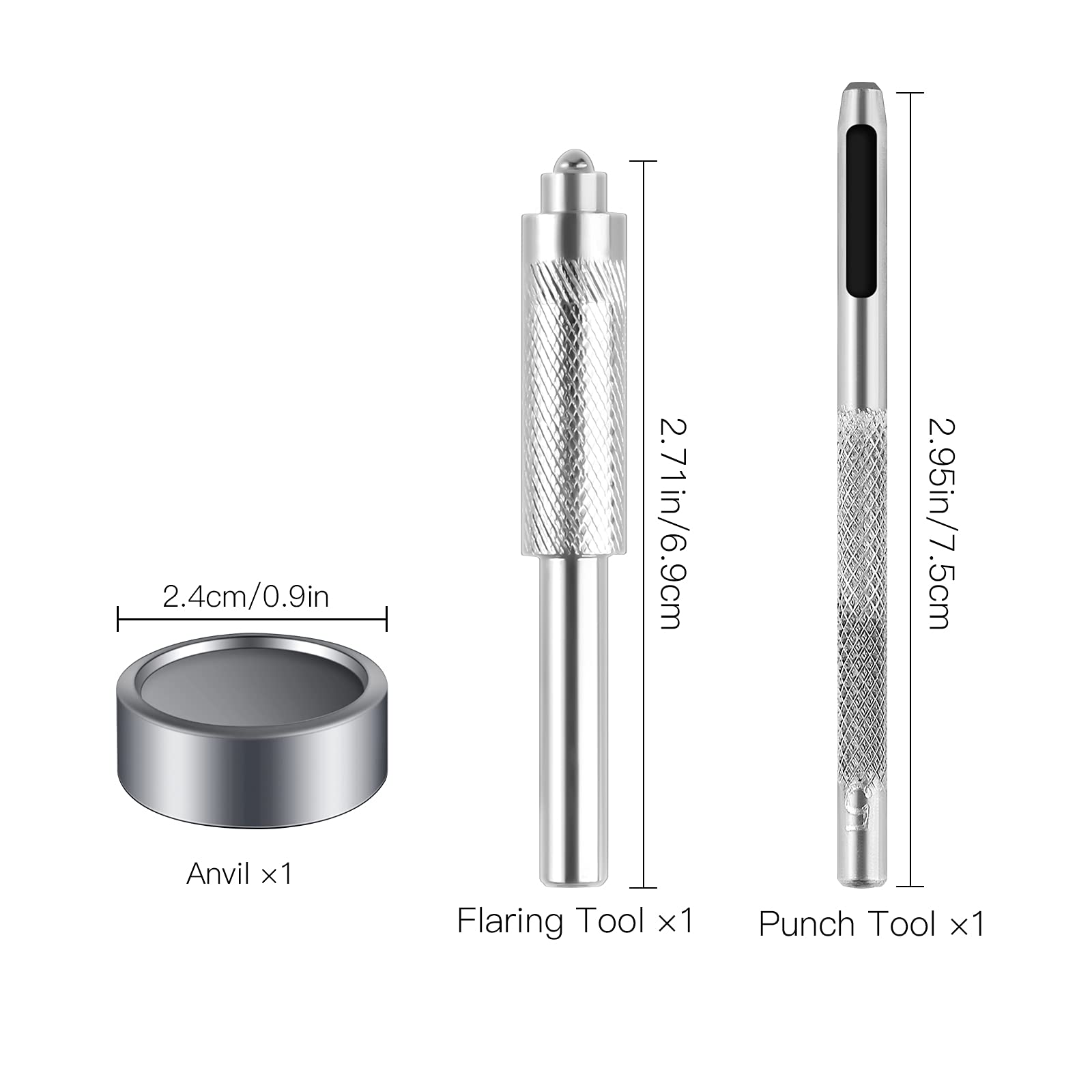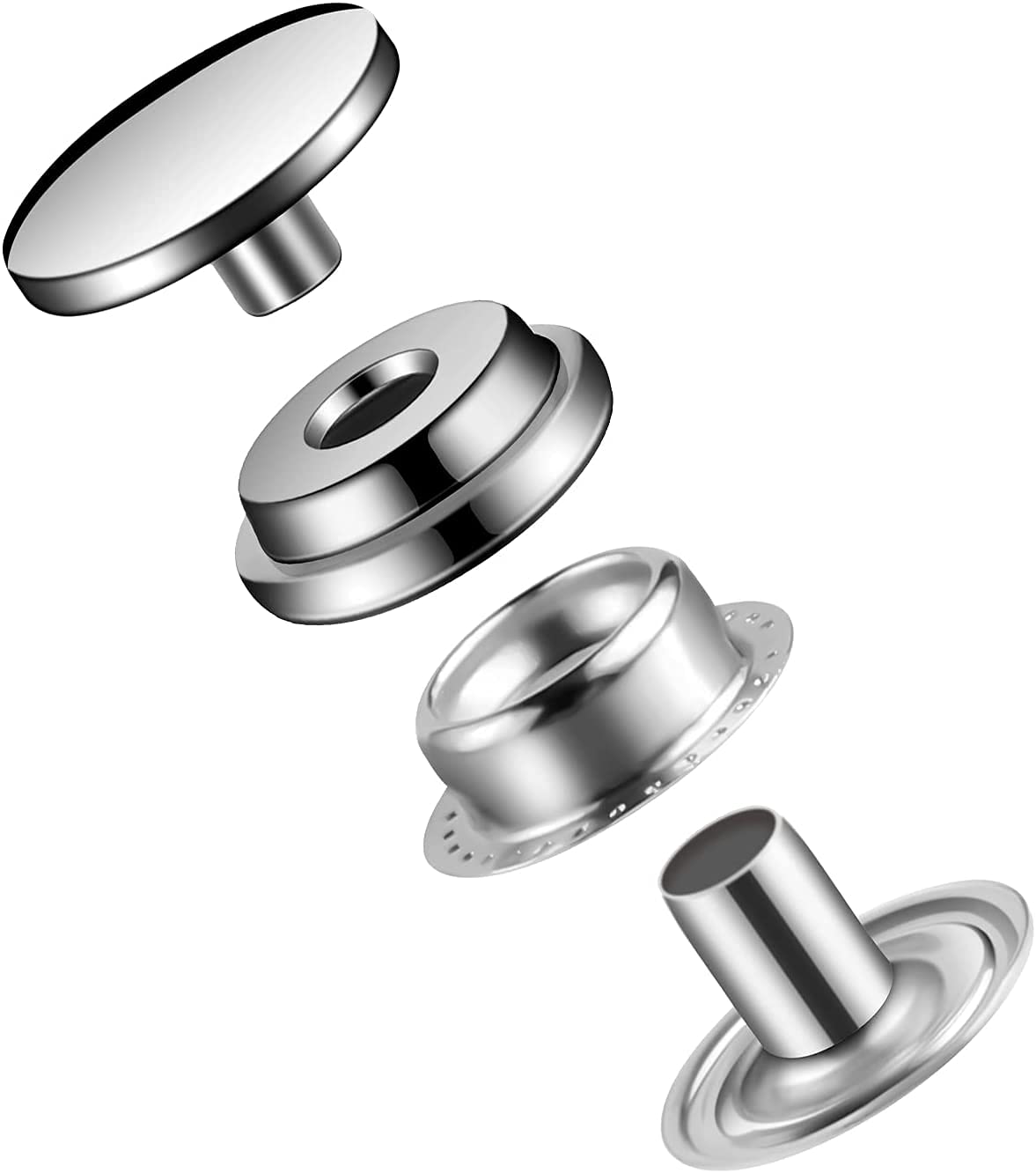 - Package IncludedThe package comes with 50 sets of snap fastener kits, which contains 4 small parts, including cover, washer, socket and stud, and also comes with 3 pieces of installation tools. In order to protect the sharpness of the Punch Tool, it is recommended to make perforations on the wooden block.