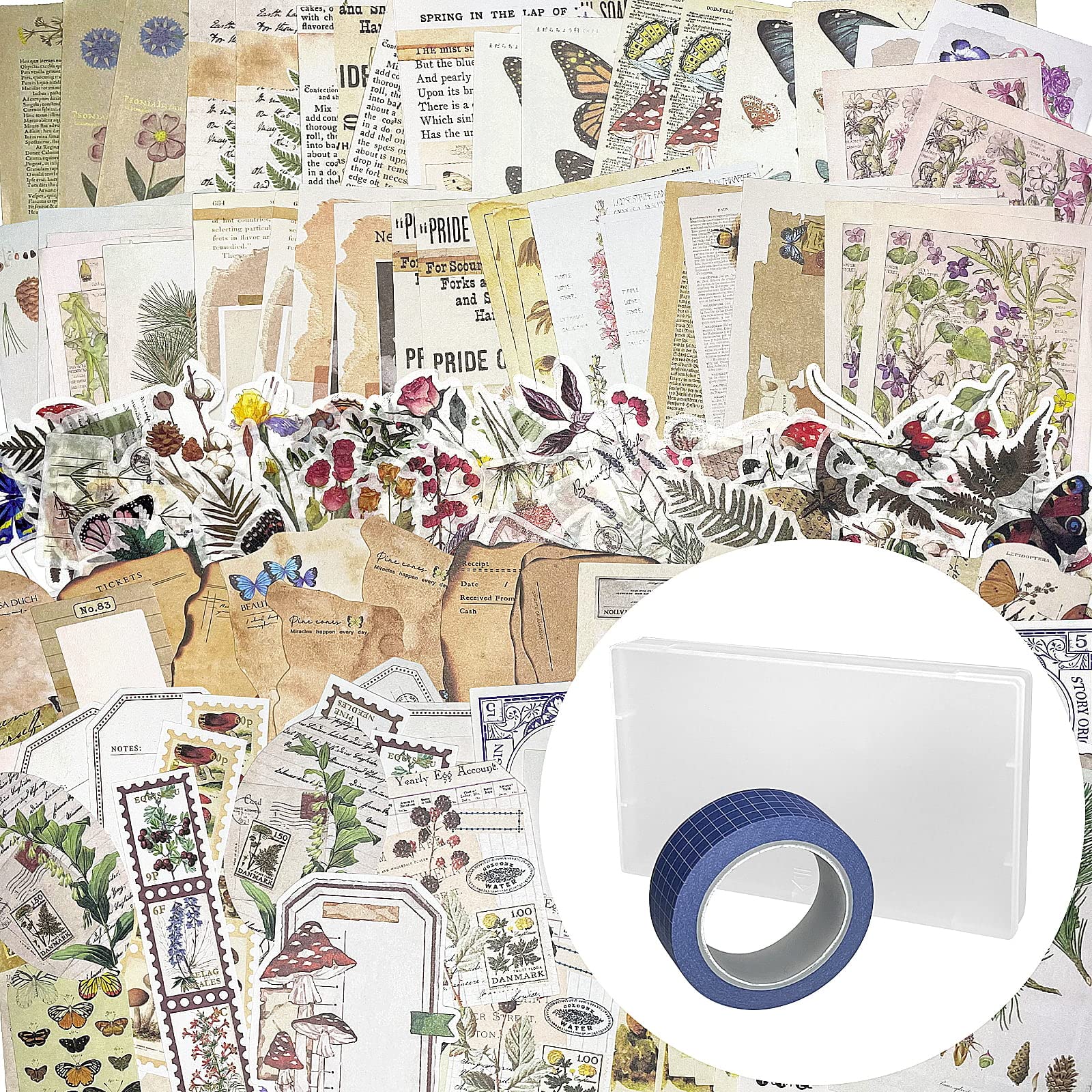 - NATURE THEMED JOURNALING SUPPLIES PACK - For beginners, we give away 1 roll of tape to go with the main body of the clipboard, you can use it to design borders, or make any shape you can imagine, such as bows. The scrapbooking pack contains mushrooms, butterfly, flowers, plants, fern, trees, old newspaper articles and more.