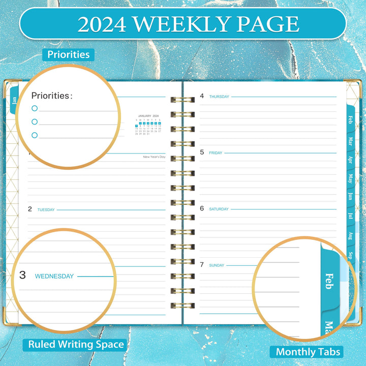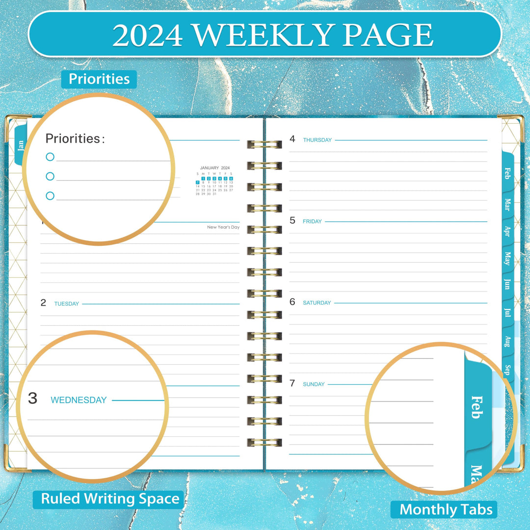 - Original Planners – 2024 Planner - Planner 2024 with Tabs, January 2024 - December 2024, Weekly and Monthly Planner 2024 with Back Pocket, 6.1 x 8.7, Blue Waterink by Lafefo