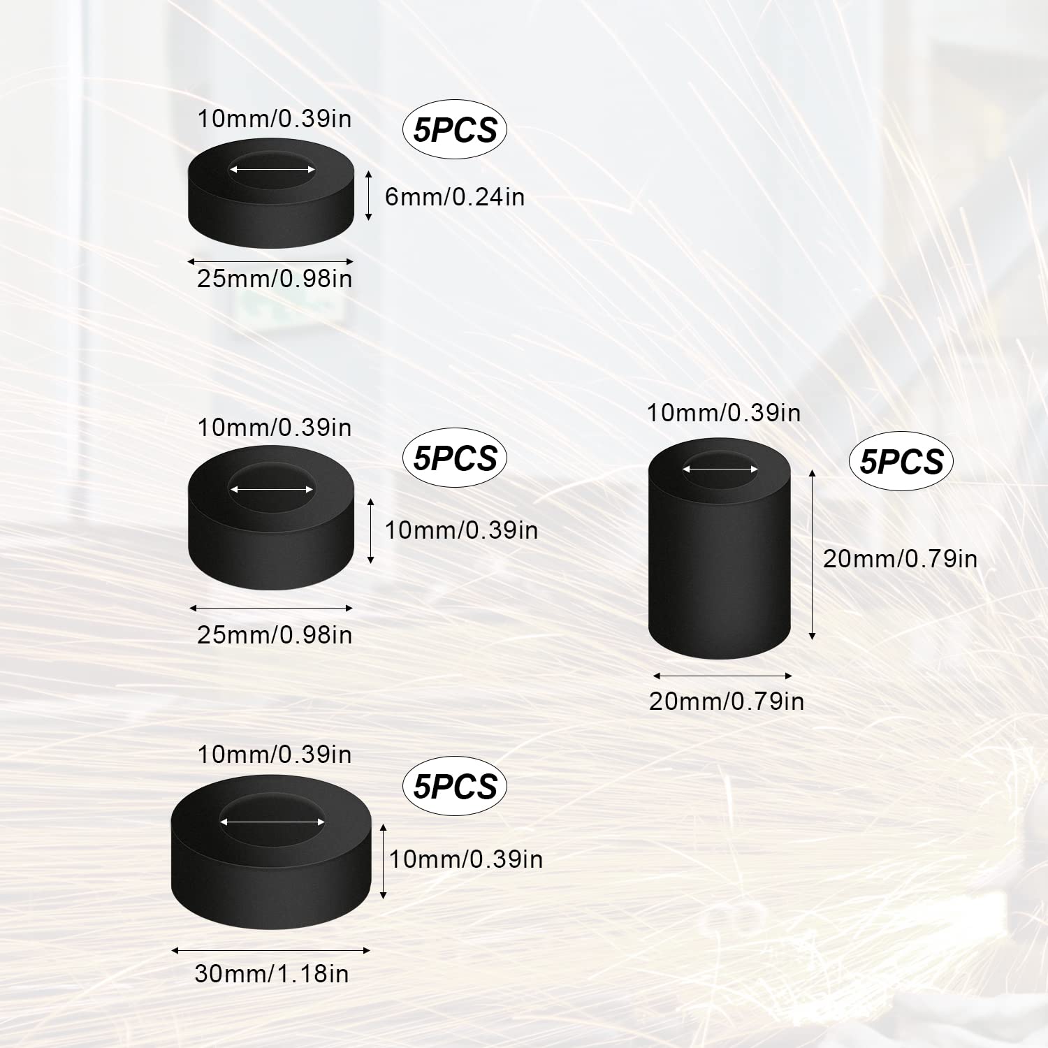 - Original Spacers – 20pcs Round Rubber Spacer, 4 Sizes Neoprene Spacer Multi Purpose Thick Rubber Grommets Anti Vibration Black Rubber Washers Kit for Home Car Accessories by AIEX
