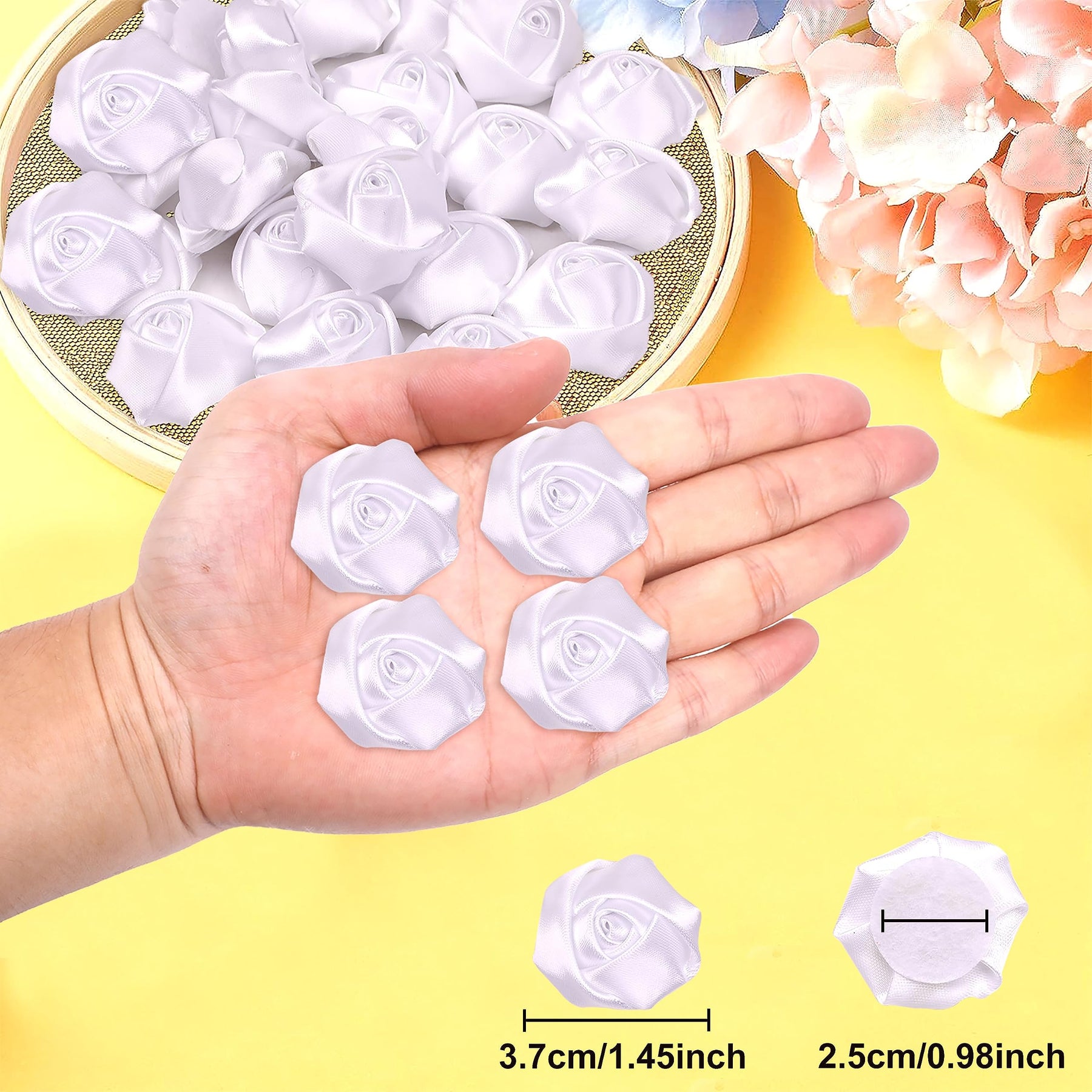 - Original Ribbons – 20pcs Satin Ribbon Rose Flower DIY Craft s (White) by Applique