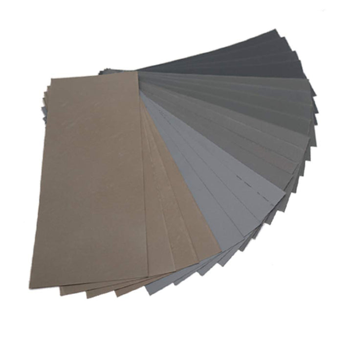 - Wet Dry Sandpaper Assortment - We offer 20pcs assorted sandpaper sheets, 4 sheets of each grits: 1000/2000/3000/5000/7000.