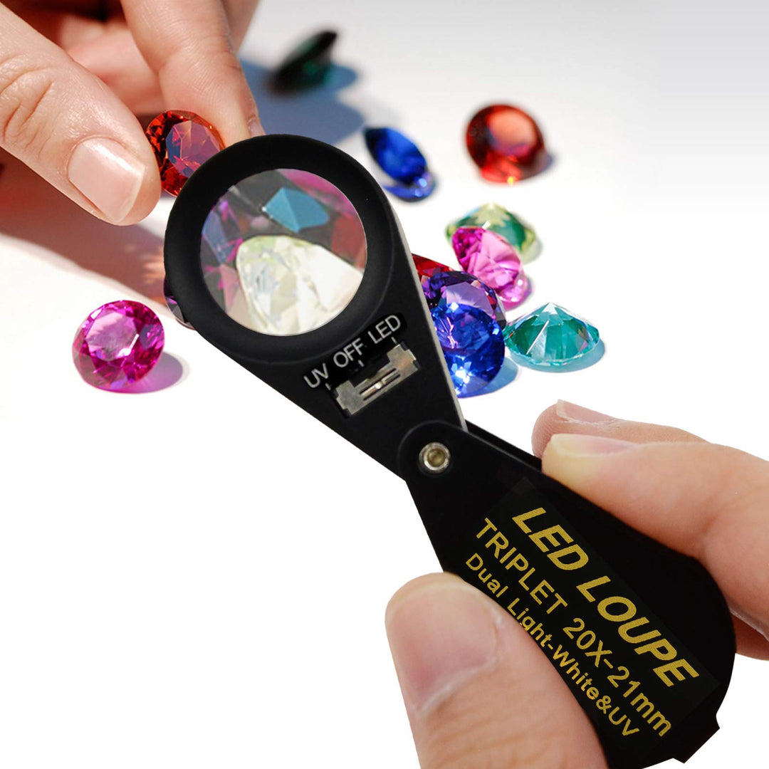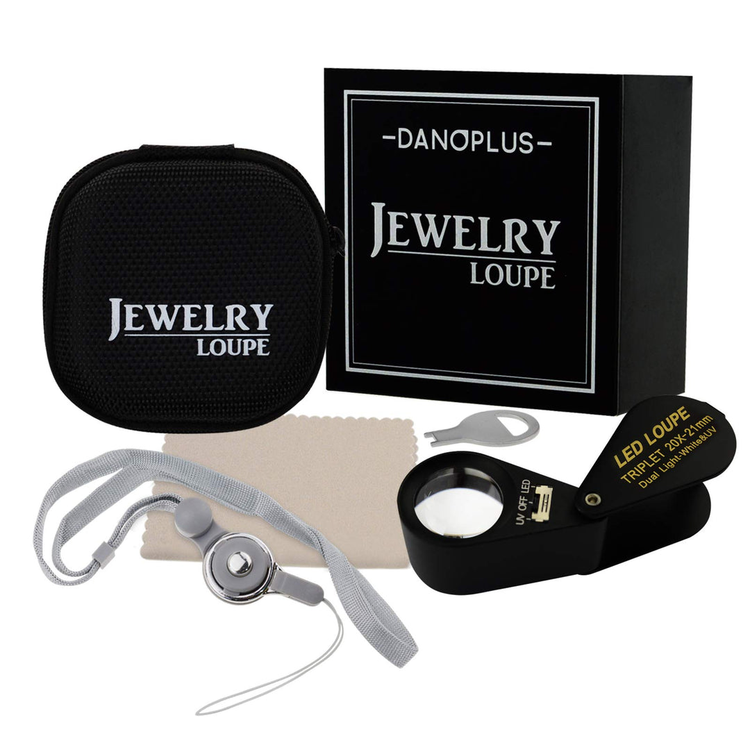 - Original Loupes – 20x Magnifier Jewelry Loupe LED UV 21mm Triplet Lens Optical Glass, Pocket Gem Magnifying Tool Jeweler, Stamp Philatelist, Coin Numismatic by DANOPLUS