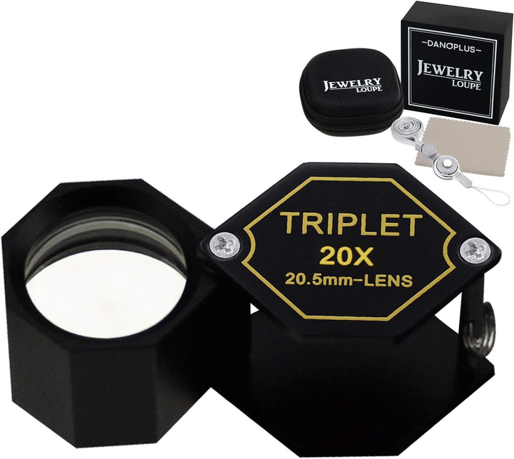 - Original Loupes – 20x Magnifier Jewelry Loupe Triplet Lens 20.5mm Optical Glass Pocket Gem Magnifying Tool for Jeweler, Stamp Philatelist, Coin numismatic, Achromatic Black Hexagonal Design Kit Set by DANOPLUS