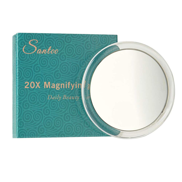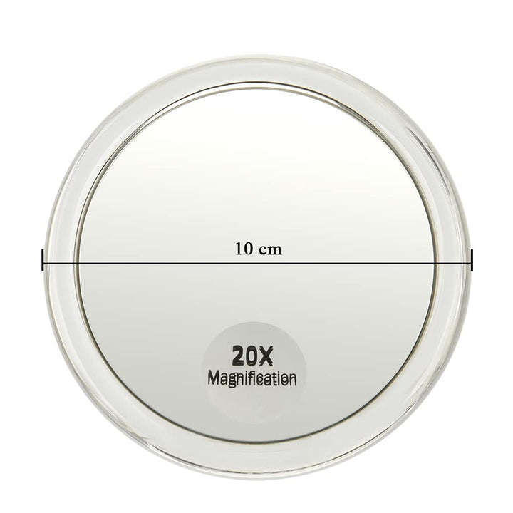 - Original Make-up Mirrors – 20X Magnifying Mirror with 3 Mounting Suction Cups - Use for Precise Makeup Application - Eyebrows/Tweezing - Blackhead/Blemish Removal - Bathroom/Travel Makeup Mirror, 4 Inch Round by SANTOO
